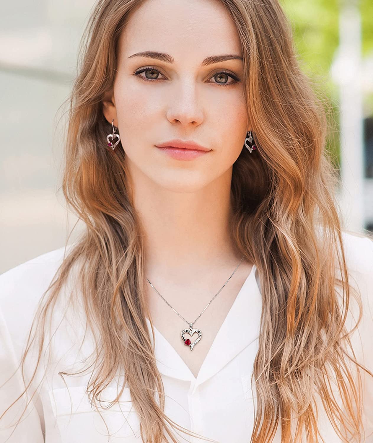❤️ YL DESIGN - This birthstones heart necklace with "red heart" represent “Passionate, Lively”