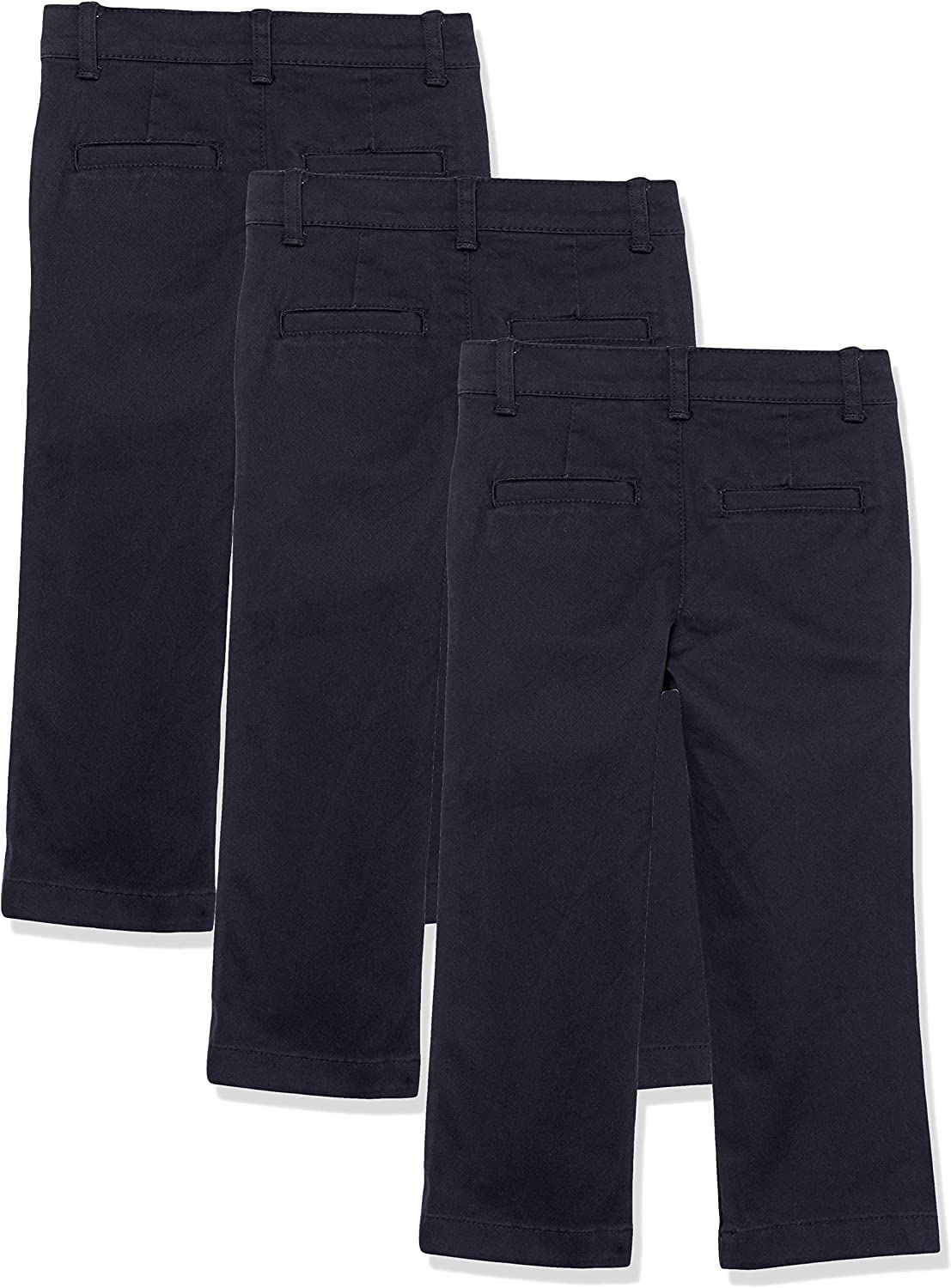 Amazon Essentials Boys and Toddlers' Uniform Straight-Fit Flat-Front Chino Khaki Pants, Multipacks