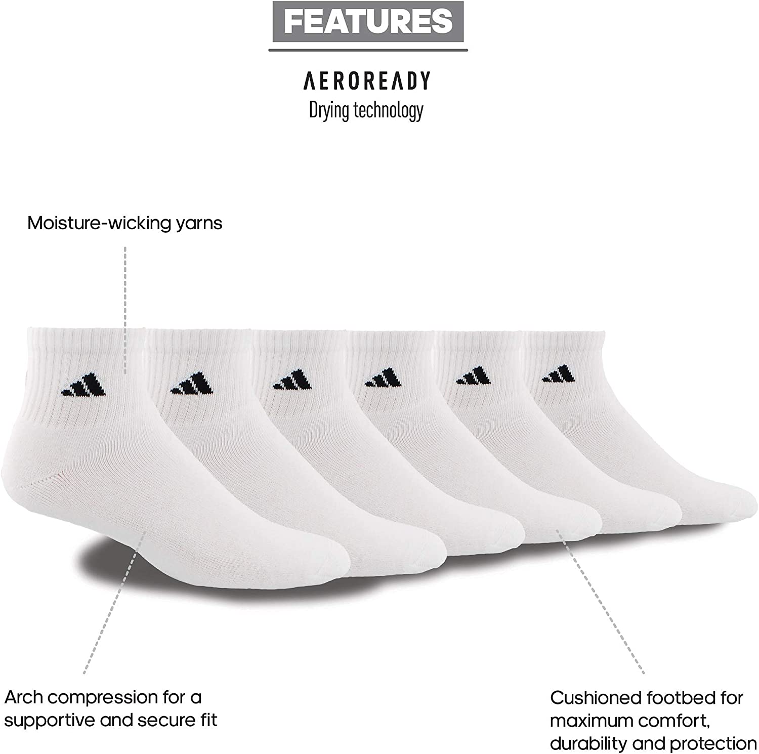 adidas Mens Athletic Cushioned Quarter Socks (6-pair)