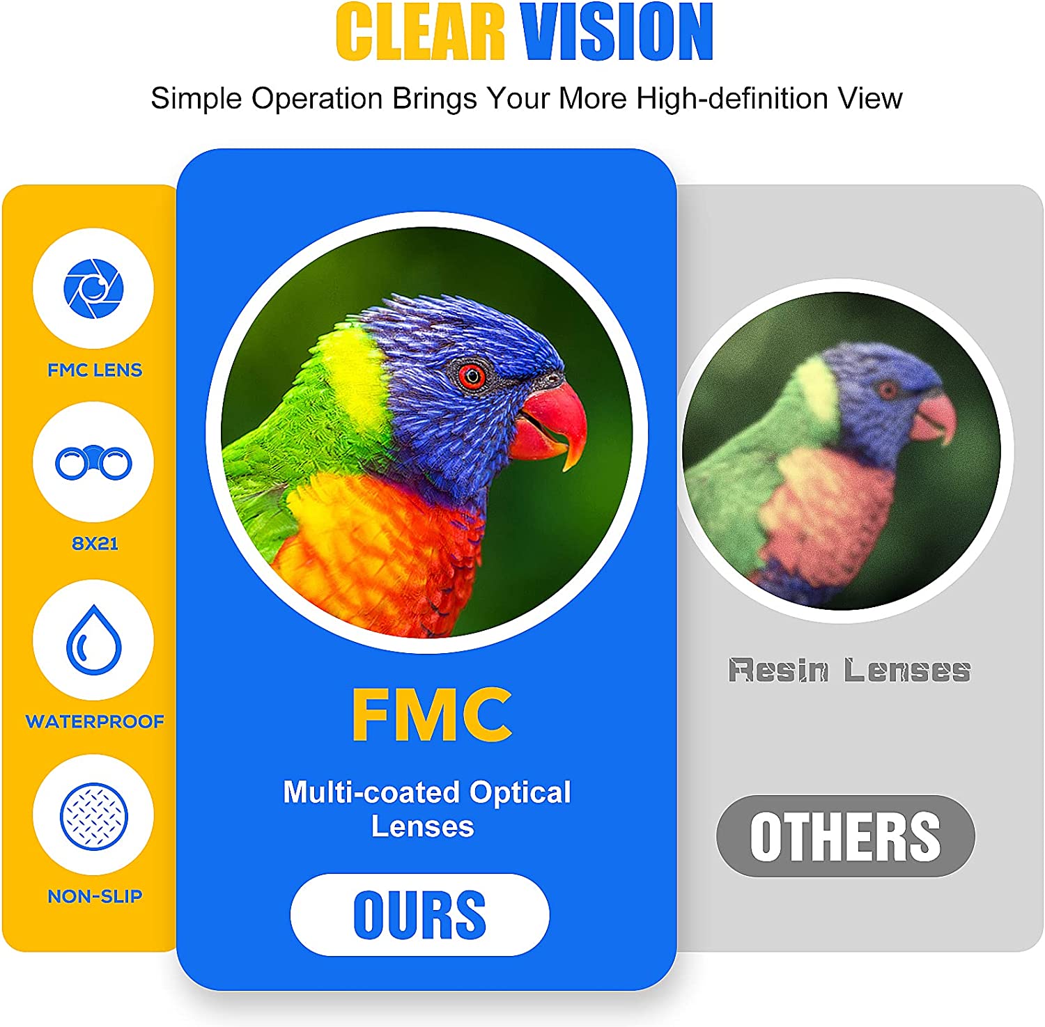• Crystal Clear View: The FMC prism green coated optics system can control optical reflection to create crisp and colorful images. The product ensures the user can see the entire visual field for capturing objects easily with 7.2° viewing angle. Multi-layer broadband coating technology, make you see the scene more realistic.
