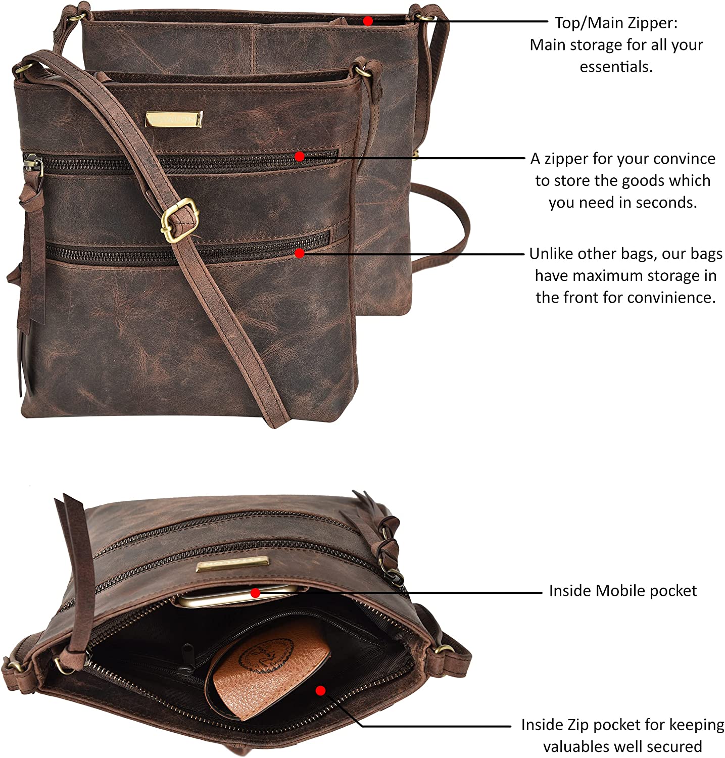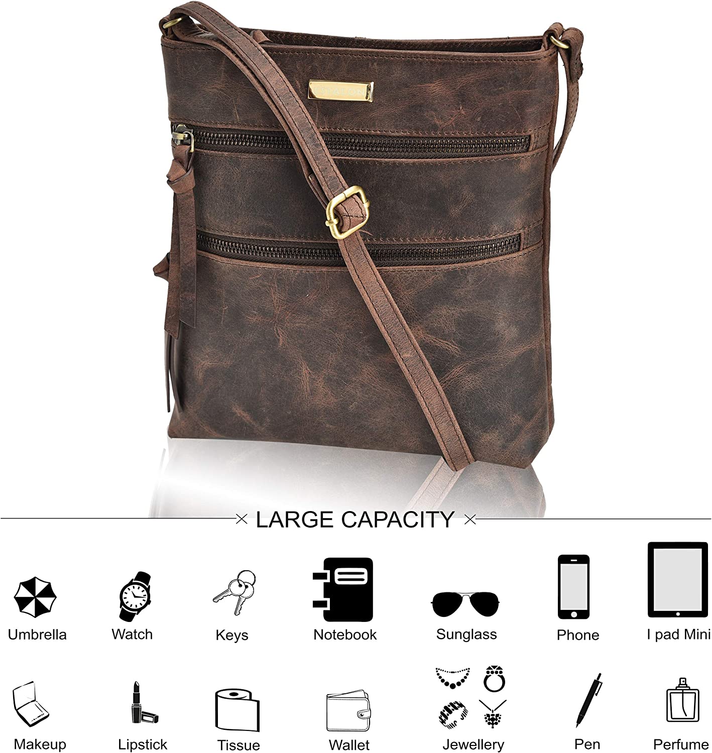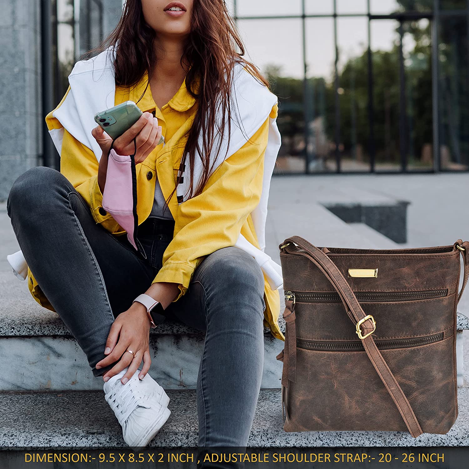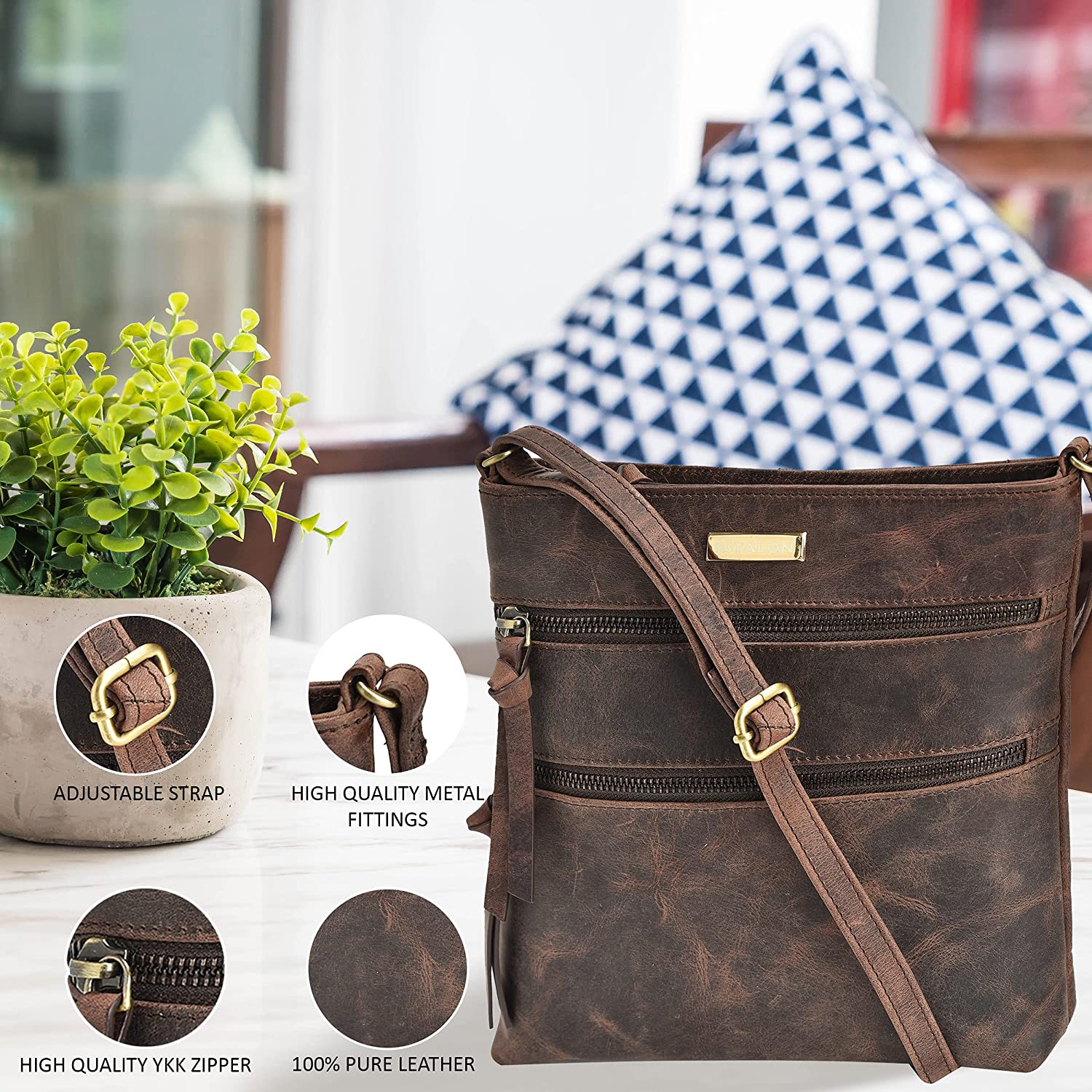 • PREMIUM QUALITY: Enjoy the perfect mix of durability, softness, and utility with our women’s crossbody leather bag. Made with real leather, each stitching on the satchel is sewed with special care by professional artisans to make it timeless, lightweight, and fashionable. Every bag goes through a series of quality checks to ensure the best quality is delivered to you. The casual-cool over the shoulder look of this luxury purse brings a stylish and vintage flair to all your looks.