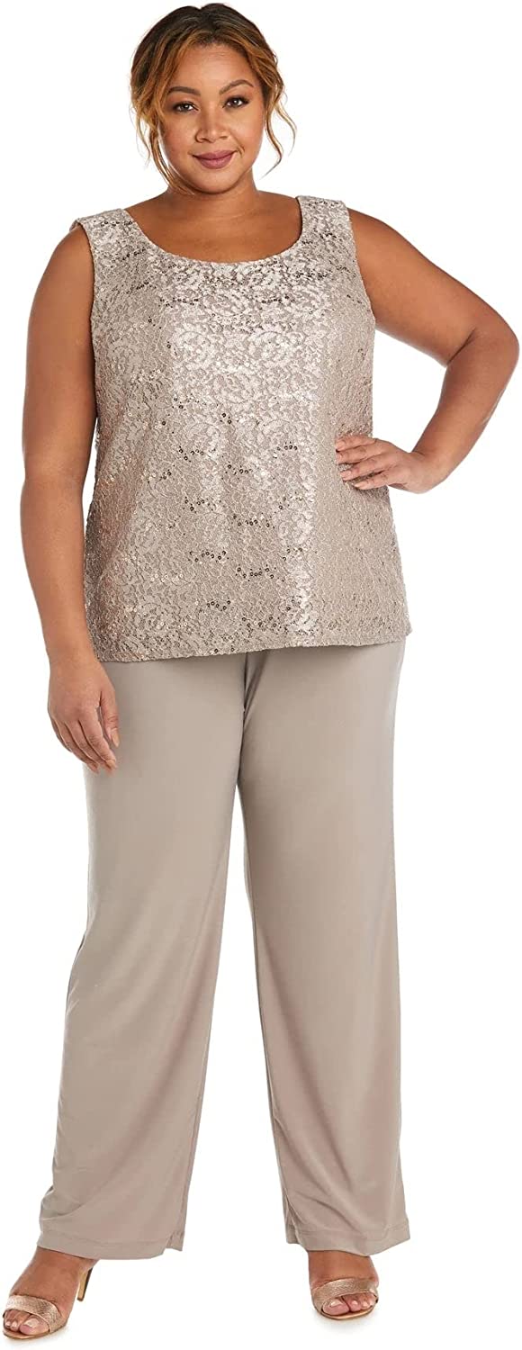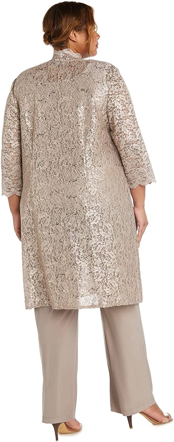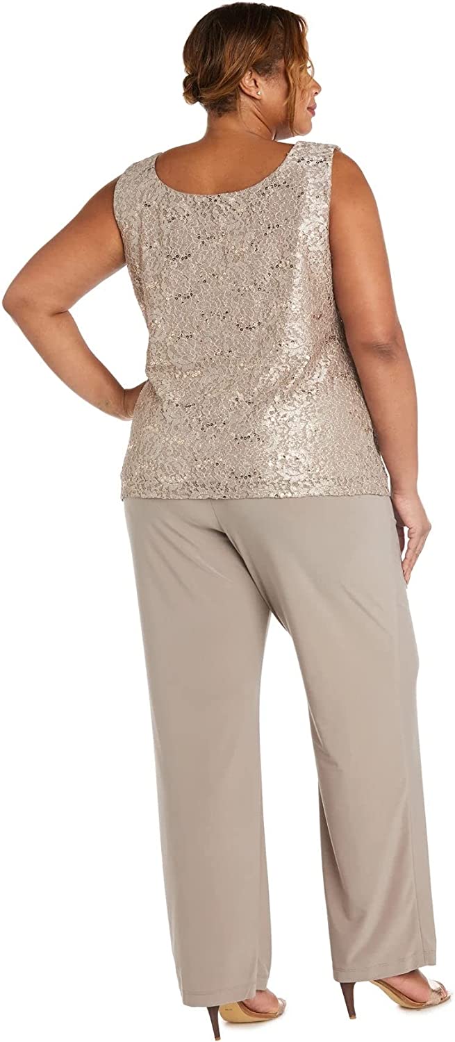 R&M Richards Women's Tank Top and Pant Set with Sheer Lace Jacket