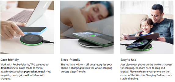 - 【Safer and Easier to USE】Exclusive Multifunctional Intelligent Protect Technology provides temperature control, surge protection, short-circuit prevention. Besides that, this wireless chargers is made of ABS Material which is fire-resistant, and has a UL Certificate, you can purchase it at assurance. Double guarantee and dual safety provide you safety experience. To get better experience, we would like you to take off the phone case and use the adapters recommended (NOT INCLUDED).
