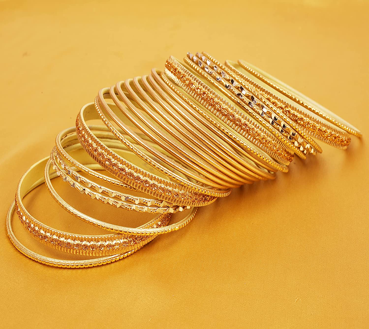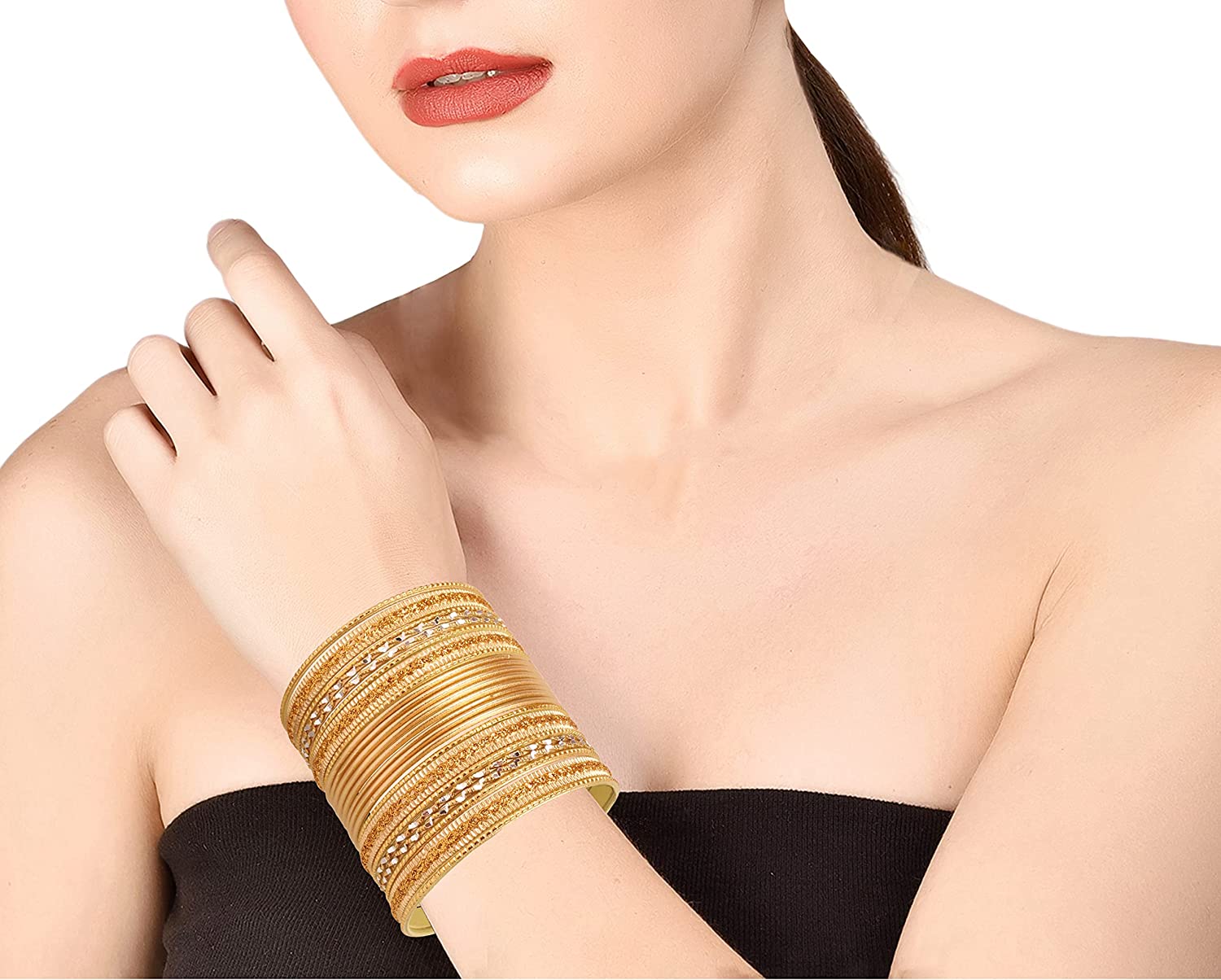 Touchstone 2 Dozen Bangle Collection Indian Bollywood Alloy Metal Textured Color Designer Jewelry Special Large Size Bangle Bracelets Set of 24 in Gold Tone for Women