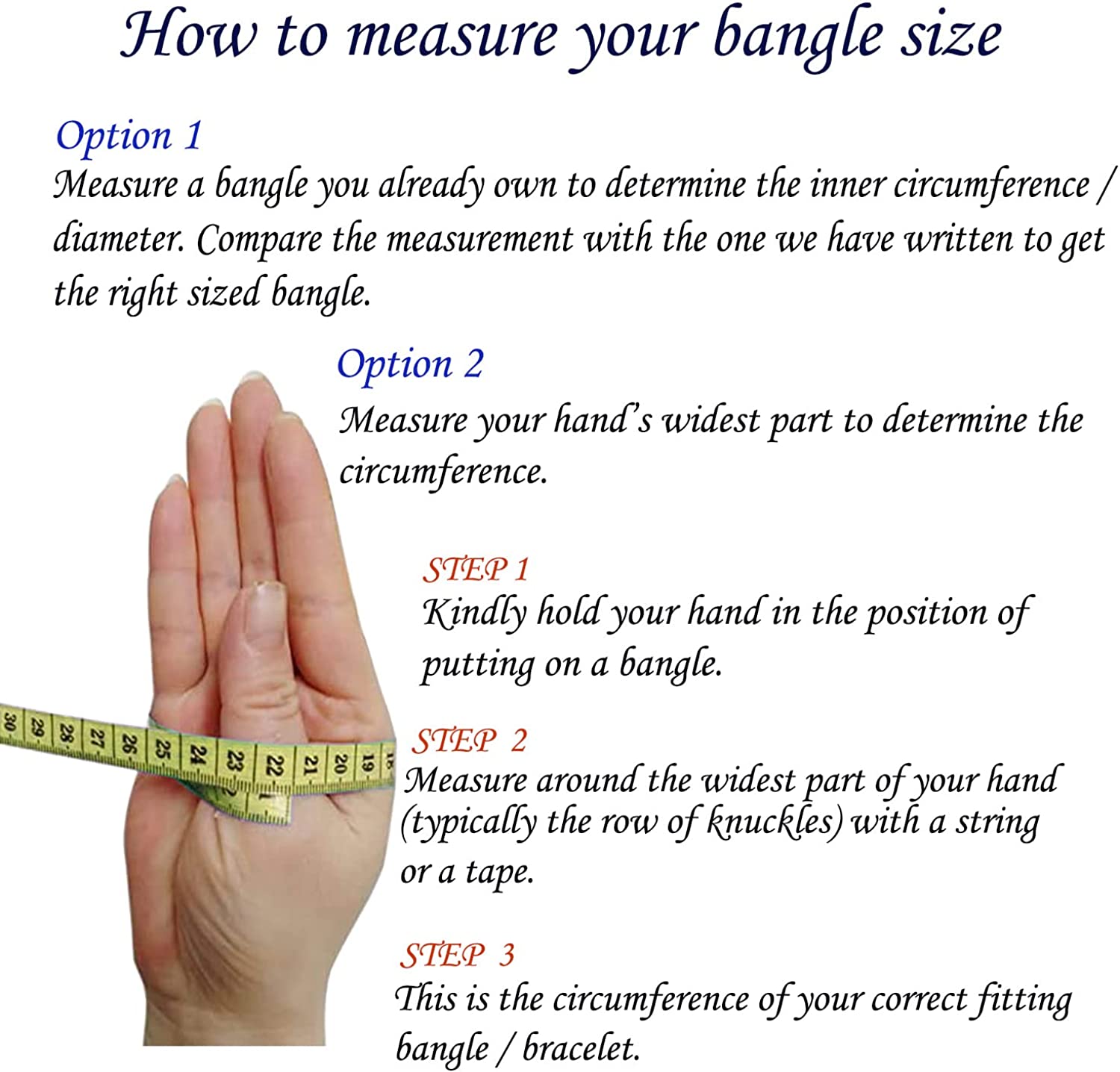 • PLEASE CHECK SIZE / DIAMETER OF OLD BANGLE (AND COMPARE) BEFORE ORDERING TO AVOID DISAPPOINTMENT. We offer many sizes from the smallest to the largest including children's sizes.