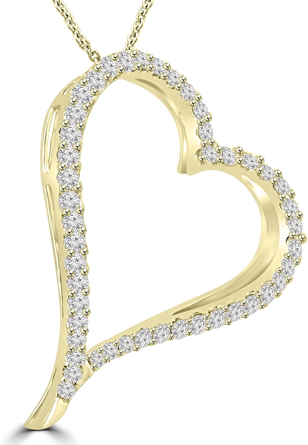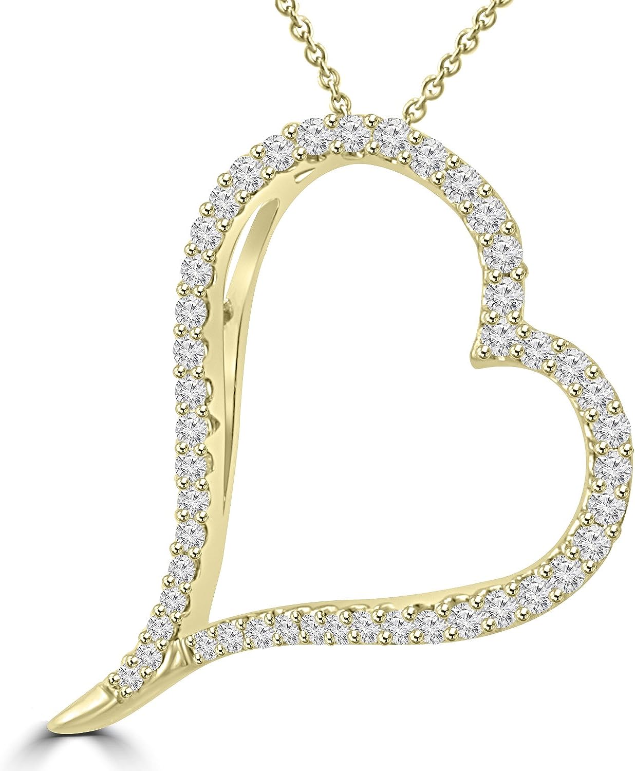 Madina Jewelry 1.39 ct Round Cut Diamond Heart Shape Pendant Necklace (G Color SI-1 Clarity) in 14 kt Yellow Gold