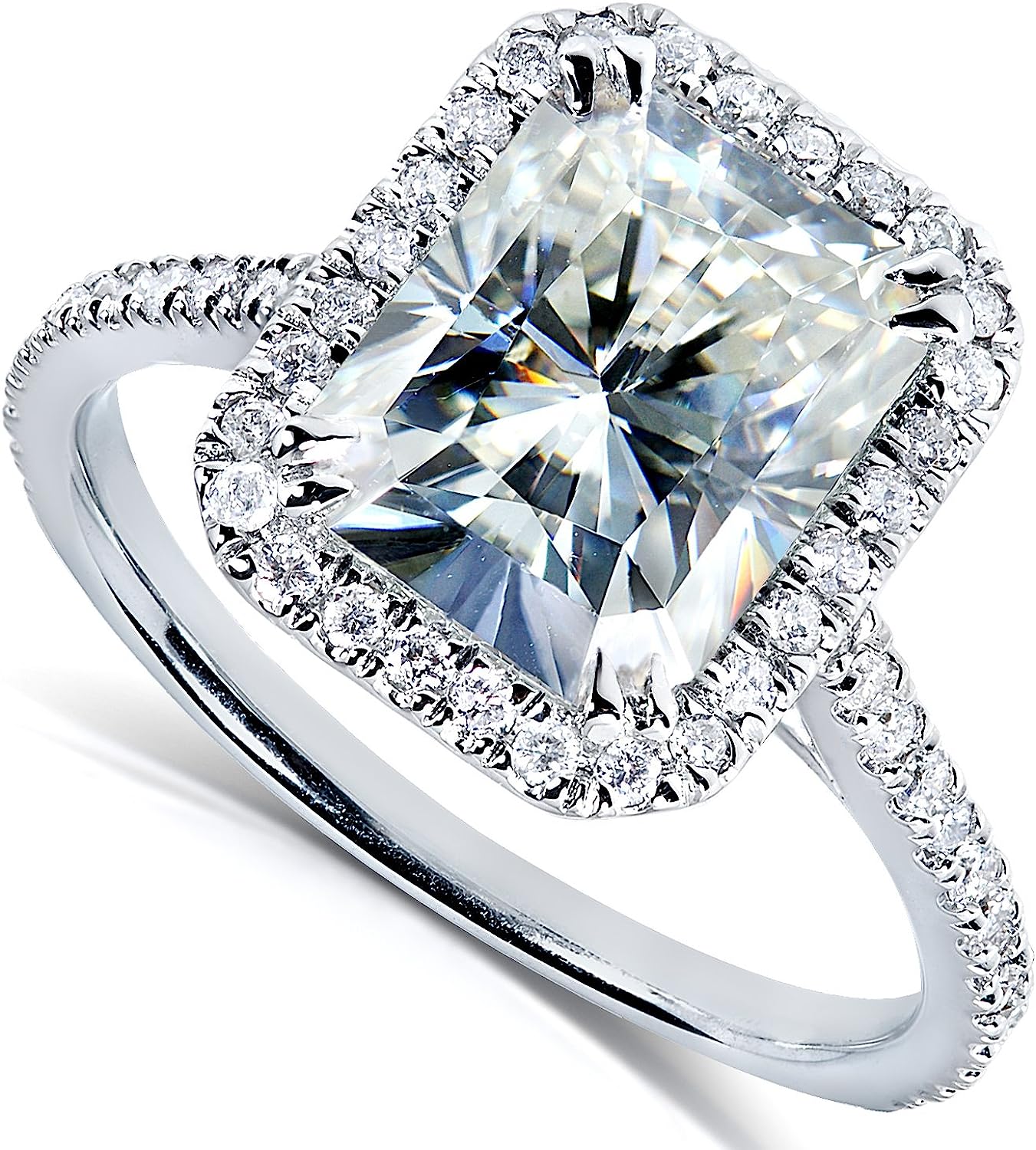 Large Halo Moissanite and Diamond Engagement Ring by Kobelli