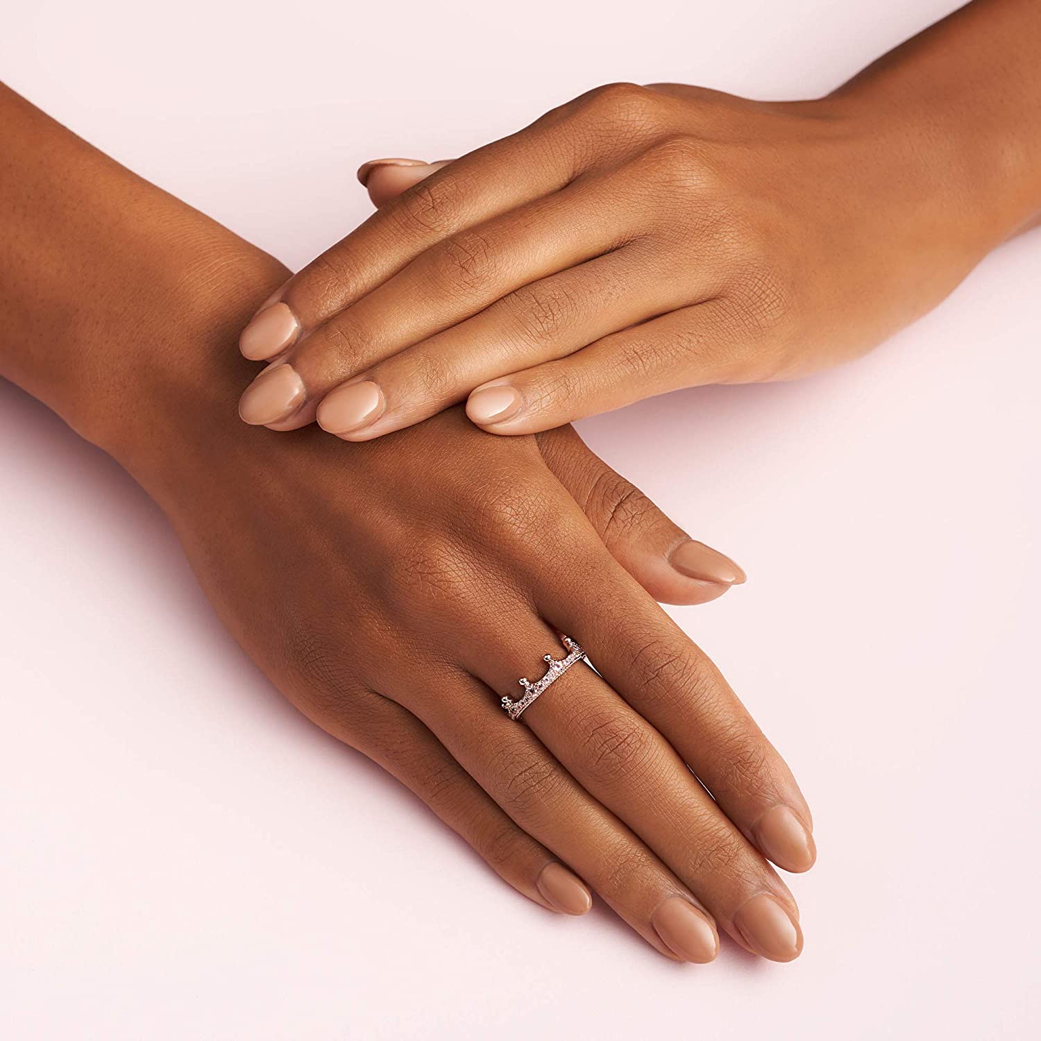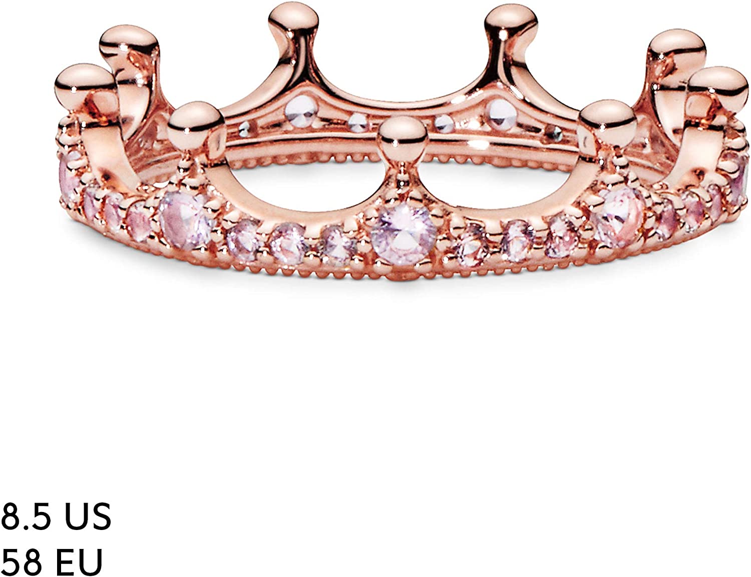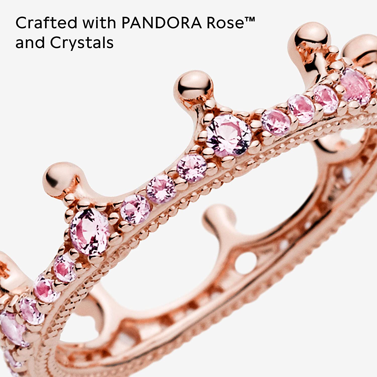 • Stunning Crown Ring Design: Give your fingers the royal treatment with this pretty pink crown ring; Crafted in Pandora Rose, a 14k rose gold-plated unique metal blend, this perfect piece features a regal crown design with pink cubic zirconia stones