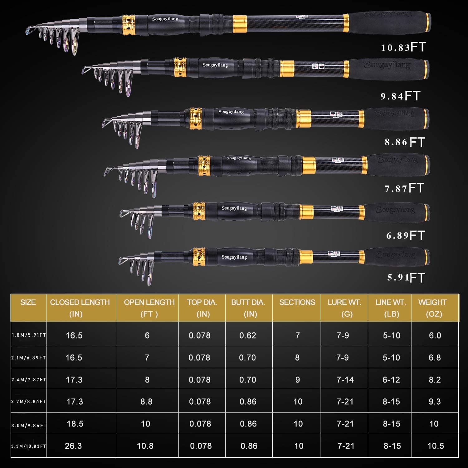 Sougayilang Fishing Rod Reel Combos Carbon Fiber Telescopic Fishing Pole with Spinning Reel for Travel Saltwater Freshwater Fishing