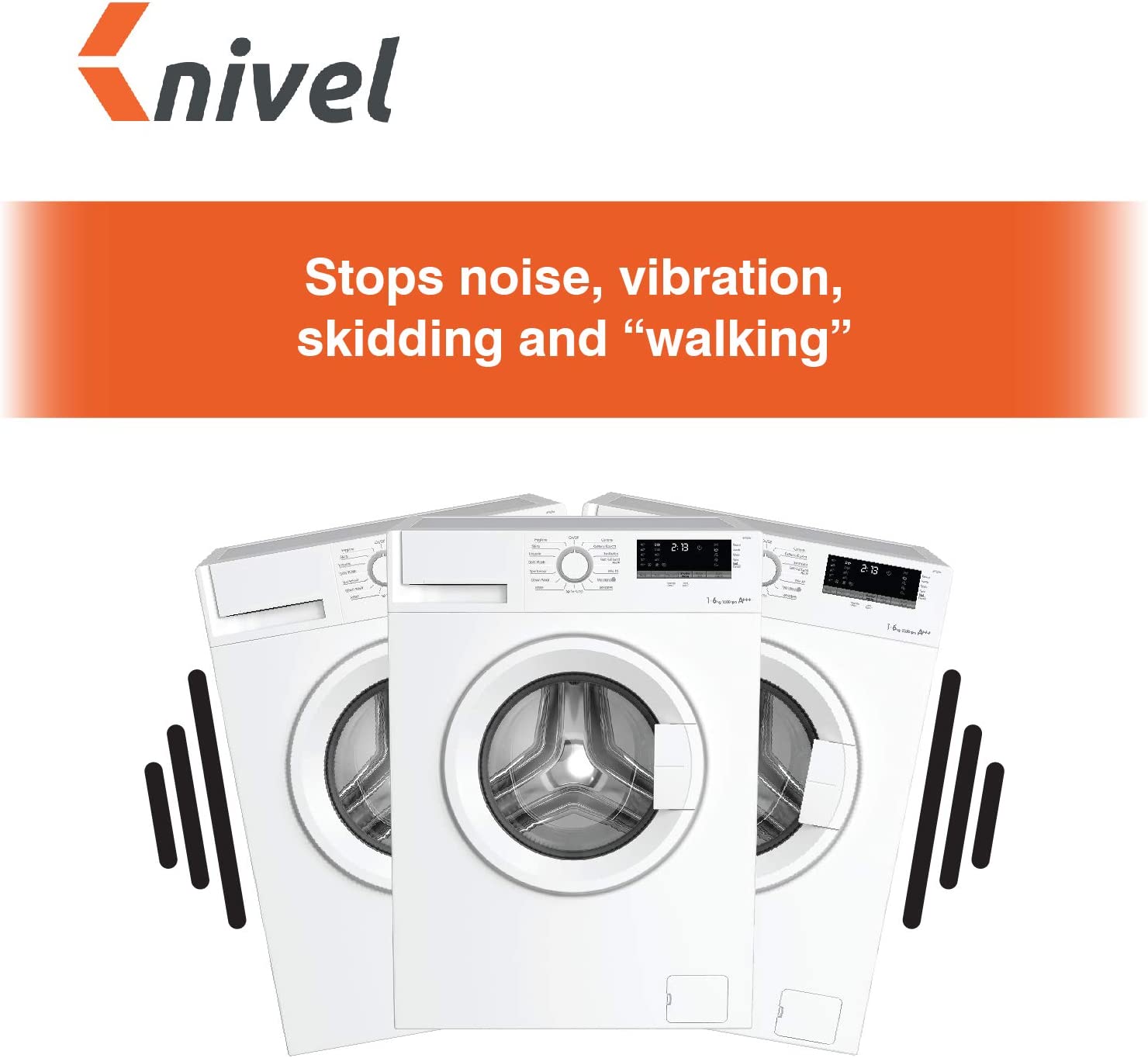• ✅ NO VIBRATION, NOISE AND WALKING - Providing stabilizing support for large appliances including washing machines and clothes dryers, Knivel anti walk pads reduce vibrations, noise and slipping for smooth, quiet operation. Shock absorbing, the textured anti-vibration pads effectively eliminating ‘walking’ appliances. This set contains four Pads to cover every corner of a washer or dryer.