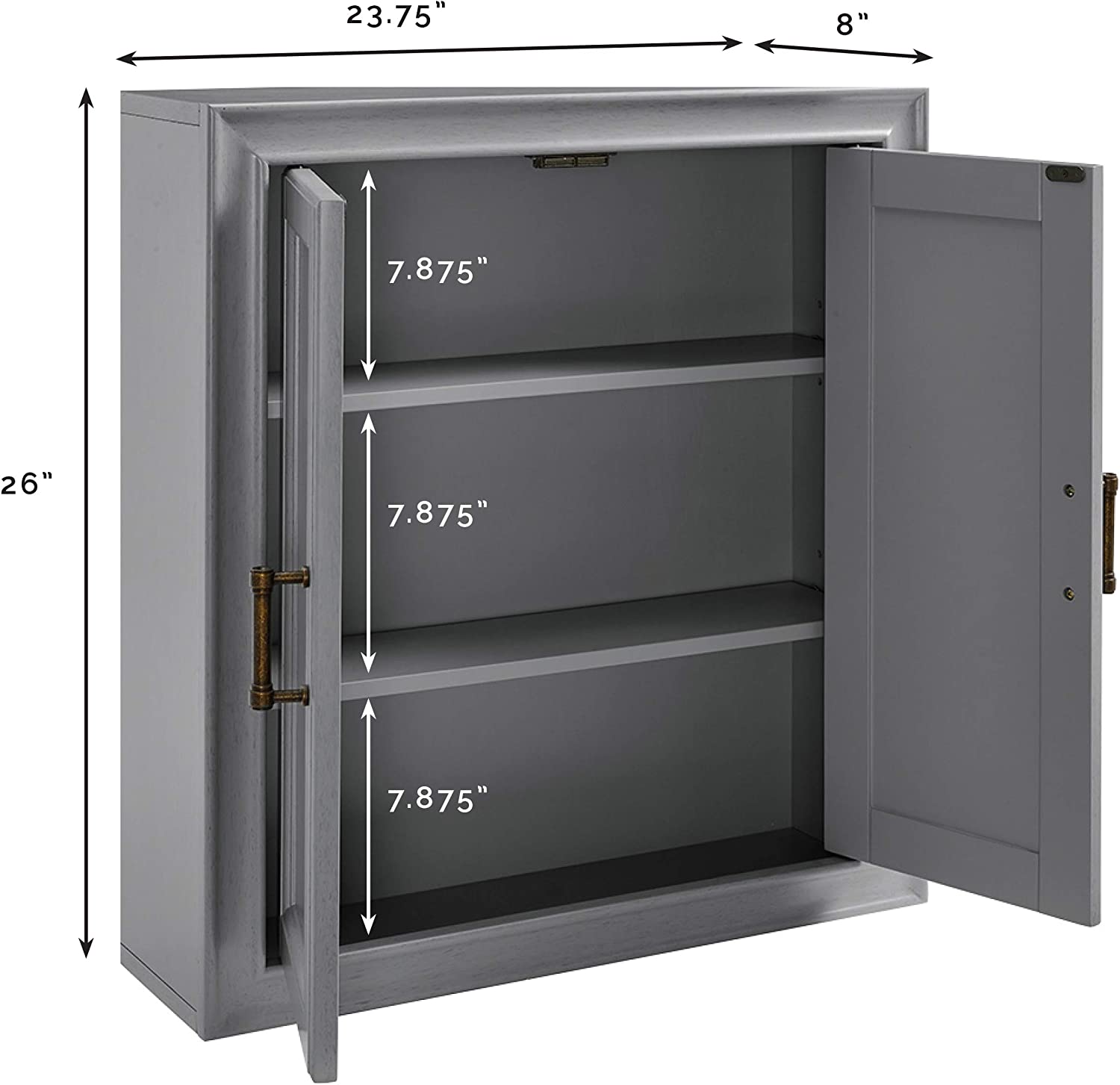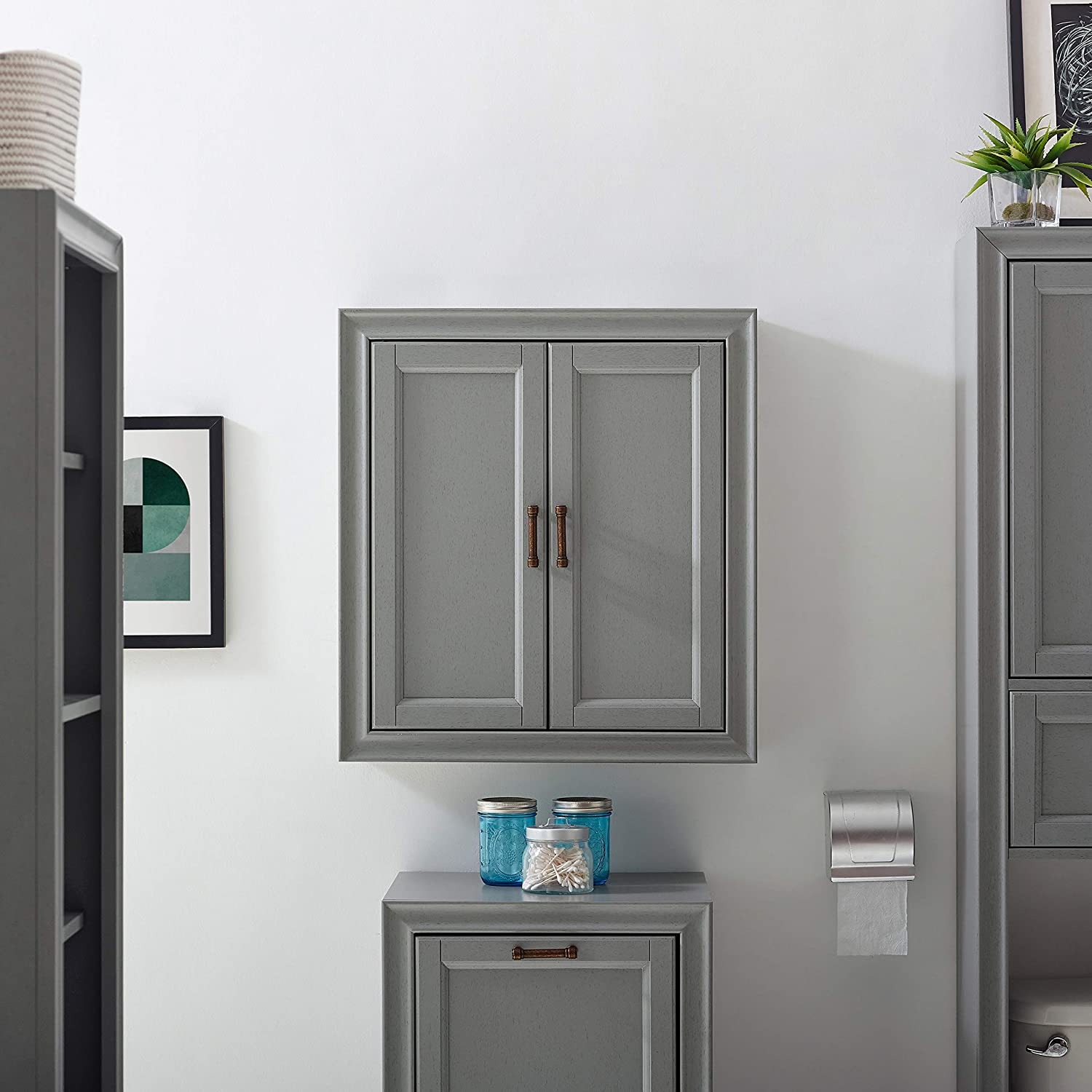 Crosley Furniture Tara Bathroom Wall Cabinet, Vintage Gray