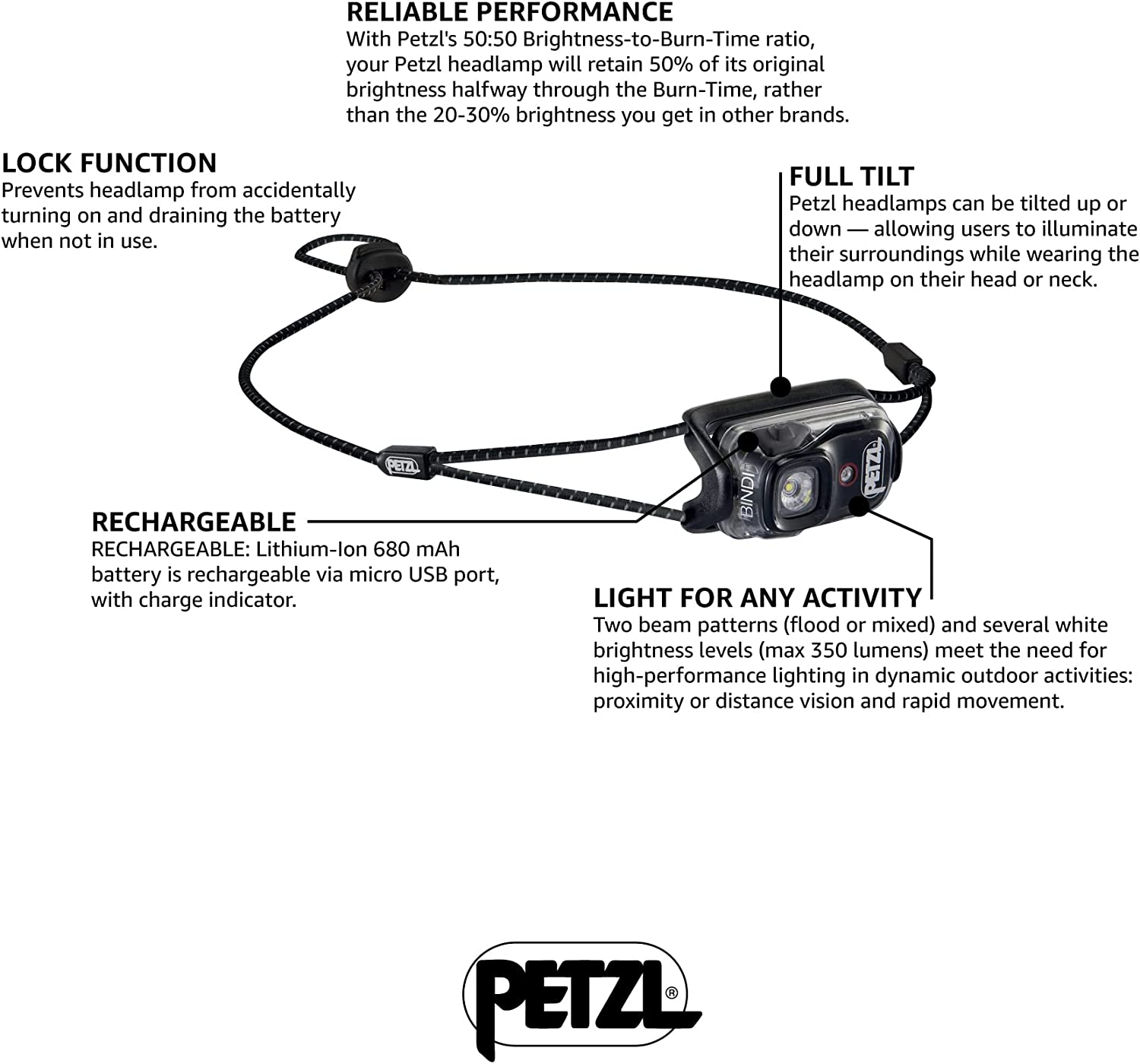Petzl Bindi Headlamp - Ultra-Compact Rechargeable 200 Lumen Headlamp Designed for Everyday Athletic Activities