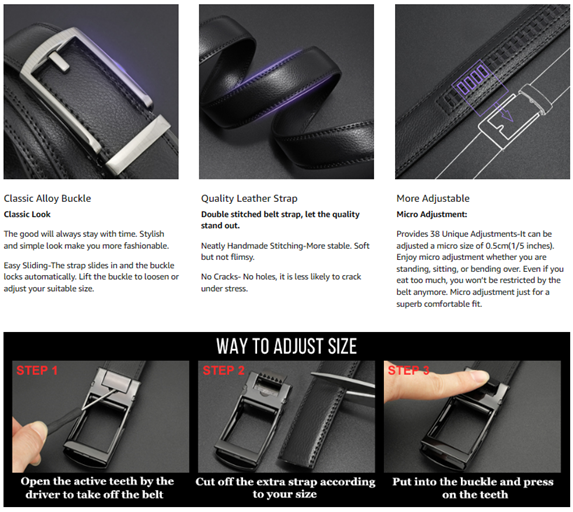 Good Raw Material to get Great Product - The Strap of this Belt is made of high-grade leather with texture, quite durable and sturdy beyond your imagination. The innovative new style buckle is made of Zinc Alloy, shiny and practical. The buckle will not fall off or get slipping after long time use. Only good raw materials can create a great product, you will like this belt for its quality.