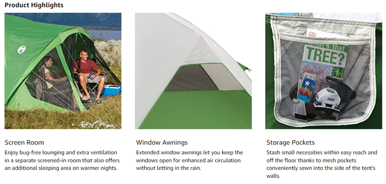 Enjoy the great outdoors without the bugs inside the Coleman Evanston 8-Person Tent with Screen Room. Great for car camping and extended camping trips, this spacious tent offers enough room for 2 queen-size airbeds and is designed to set up in under 15 minutes thanks to snag-free, continuous pole sleeves and Insta-Clip pole attachments. The tent’s WeatherTec system features patented welded floors and inverted seams to keep the rain off you and your gear; a rainfly is included for extra weather protection. Extended awnings let you keep the windows open for enhanced air circulation without letting in the rain. The tent also comes with a separate screened-in room for extra ventilation, covered storage for your gear, or an extra sleeping area on warmer, dry nights. Remove the included rainfly to let in more sunlight through the mesh roof on dry days or to gaze up at the stars on dry nights. "Enjoy a serene sunset in the great outdoors without the mosquitoes. In addition to all the features that make it a great choice for car camping, the Coleman 8-Person Evanston Dome Camping Tent includes a separate full-floor screen room for bug-free lounging, covered storage, or extra sleeping space on warmer nights. In addition to all the features that make it a great choice for car camping, the Coleman 6-Person Evanston Dome Camping Tent includes a separate full-floor screen room for bug-free lounging, covered storage, or extra sleeping space on warmer nights.