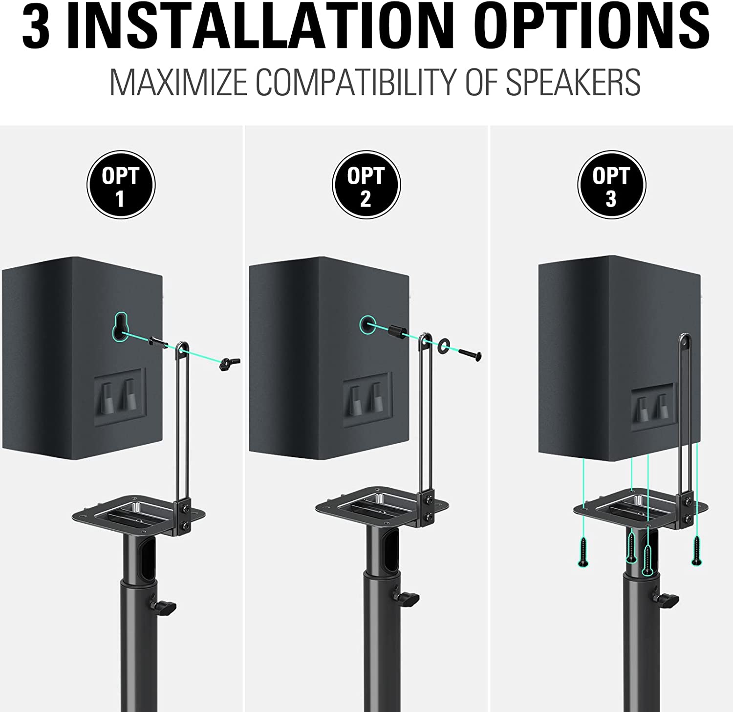 • Create a Clean & Organized Look - The stands elegantly display your speakers while hiding the speaker wires with the help of the hole( 0.8“ W x 1.73" H) for cable management. Warm Tips: Our speaker stands come with multiple attachments available for speakers with different holes. Please check the speaker holes location before purchase.