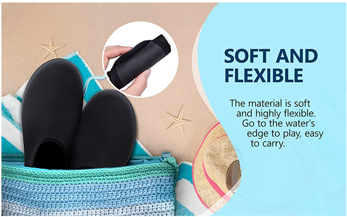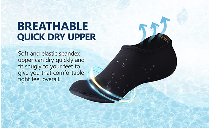 • Easy on and off: Aqua socks often feature a slip-on or quick-lace design, making them easy to put on and take off.