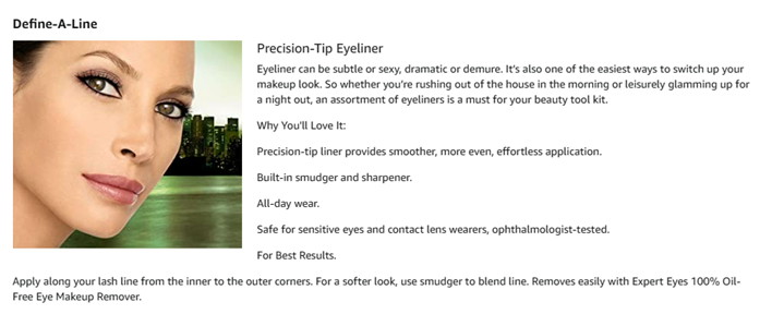 • It's All in the Eyes: From subtle lines, to smokey vibes, custom brow looks, classic tones or a shot of color; Our eyeshadow, eyeliner, brows and mascara collections are designed to transform your look