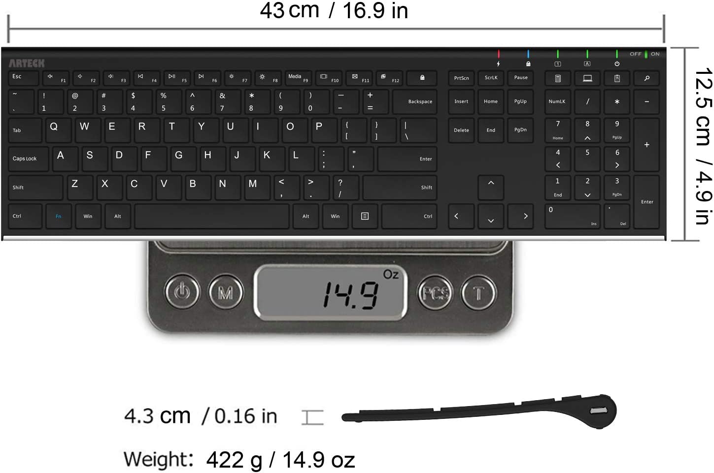 Arteck 2.4G Wireless Keyboard Stainless Steel Ultra Slim Full Size Keyboard with Numeric Keypad for Computer/Desktop/PC/Laptop/Surface/Smart TV and Windows 10/8/ 7 Built in Rechargeable Battery