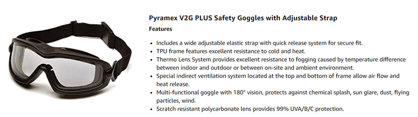 Pyramex V2G PLUS Safety Goggles with Adjustable Strap
