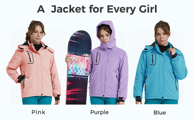 Keep The Cold & Snow Out - This fleece-lined snowboarding for girls is the ideal choice for keeping your kids warm and protected from harsh winds and snow. The hooded fleece ski jacket for girls features adjustable cuffs with thumbhole, detachable fleeced hood and wide collar, all designed to keep cold air and snow out and warmth in.