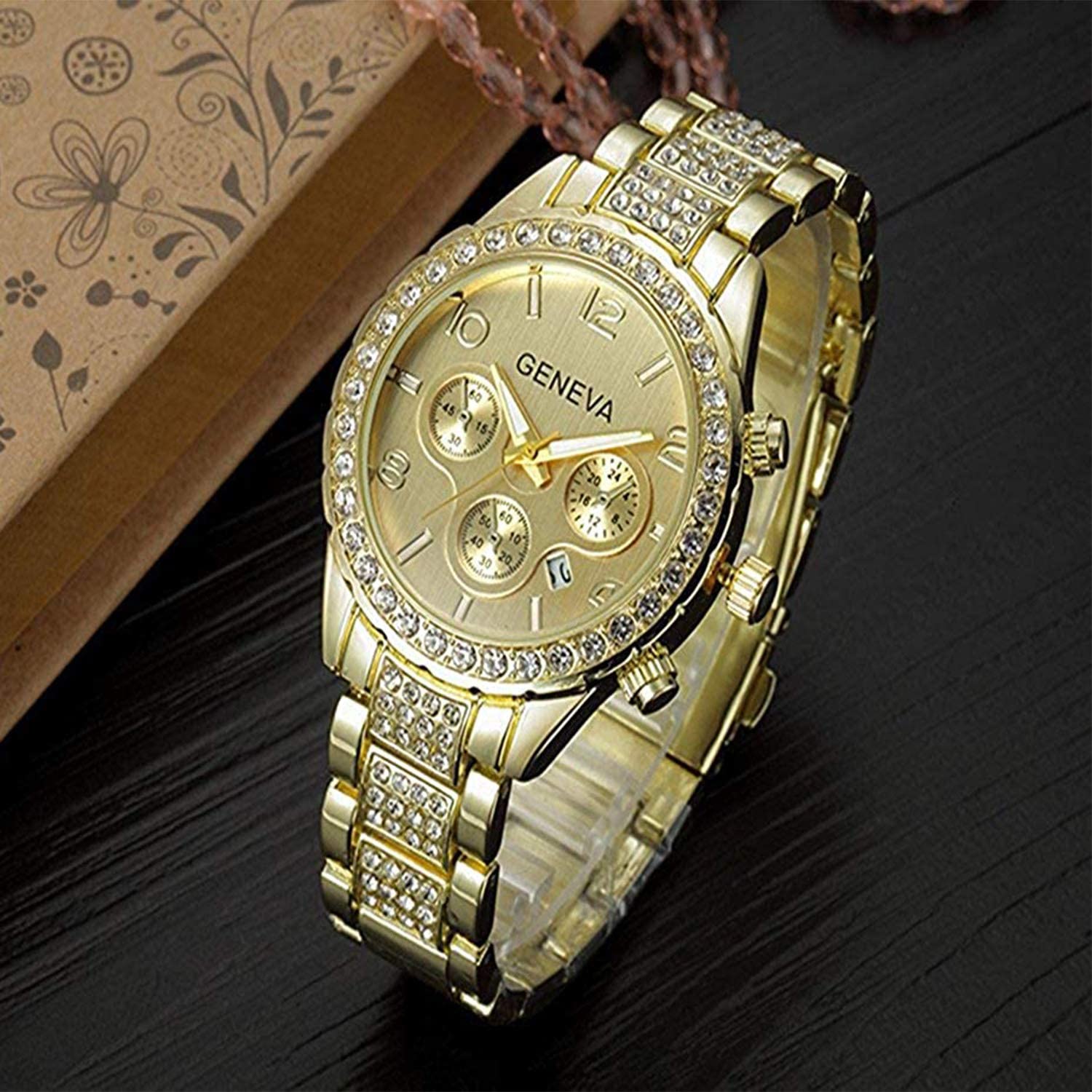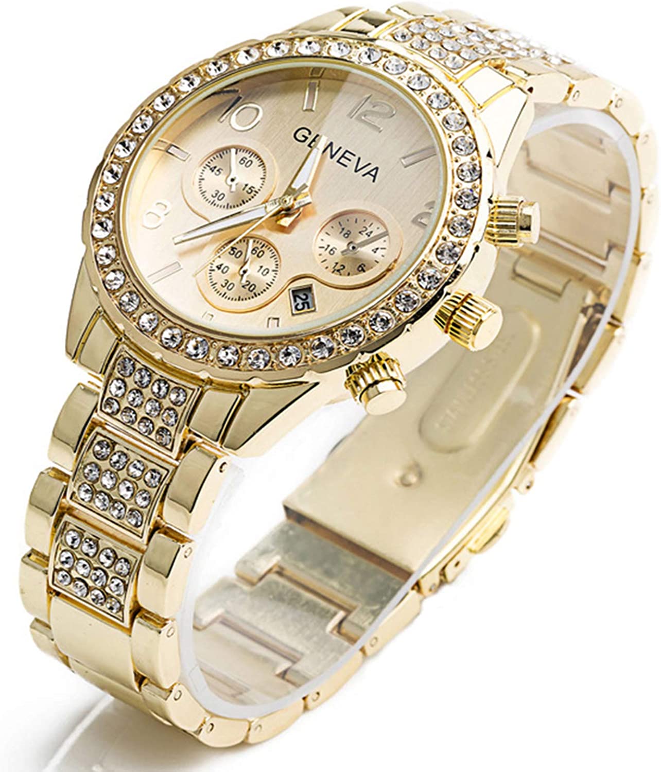 Gosasa Luxury Unisex Crystal Diamond Watches Quartz Digital Calendar Rose Gold Silver Stainless Steel Watch
