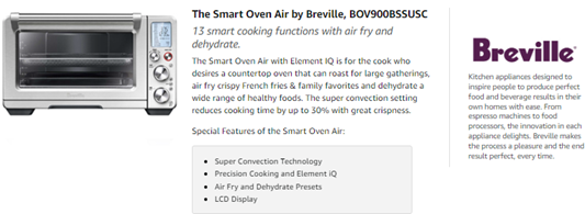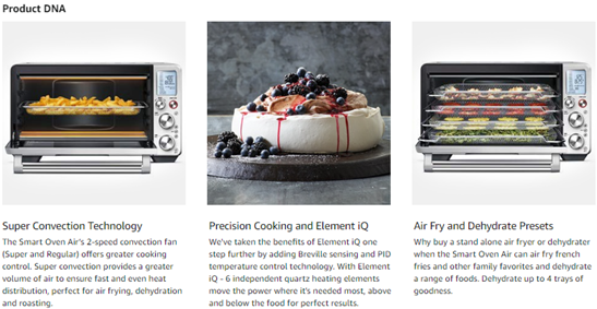- The Breville Smart Oven Air with Element iQ System is a versatile countertop oven allowing you to roast, air fry and dehydrate; Use super convection to reduce cooking time by up to 30% and choose from 13 cooking functions; Includes an interior oven light.Temperature : 80-480 °F