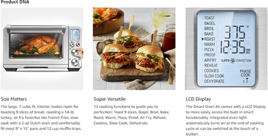 - LCD DISPLAY: LCD display to easily access the built in smart functionality and all cooking functions; The LCD also indicates when pre-heat has completed and automatically begins to count down on the cooking time for perfect results