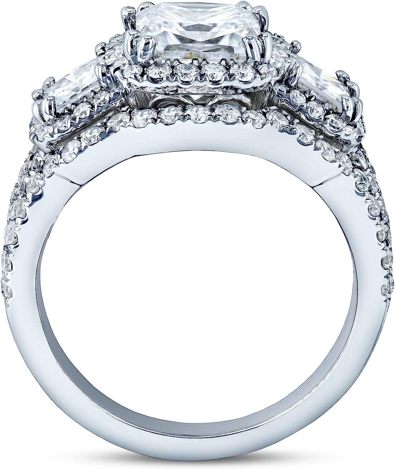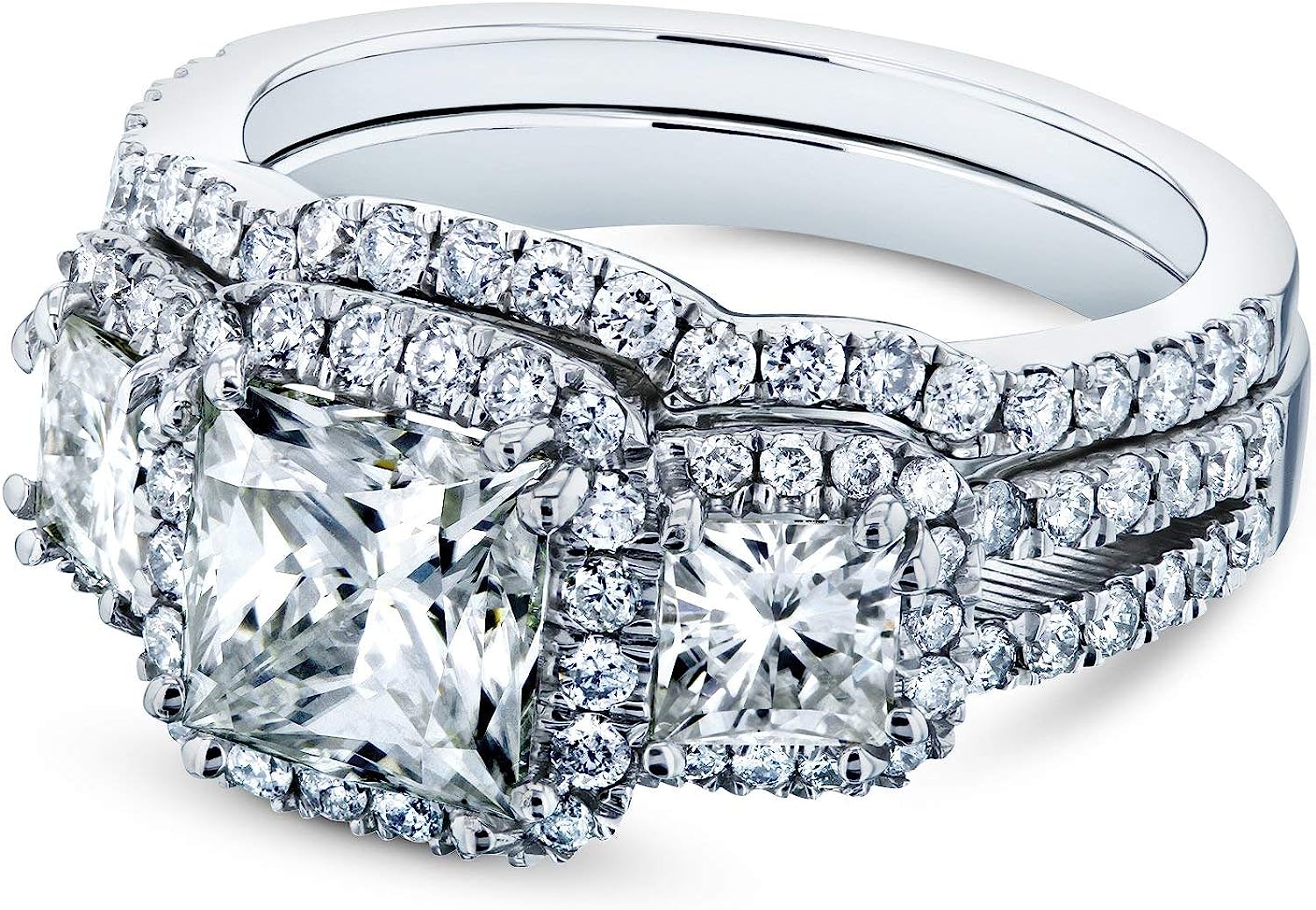 Kobelli Princess Moissanite Halo 3-Stone Bridal Rings Set 3 1/10 CTW 14k White Gold