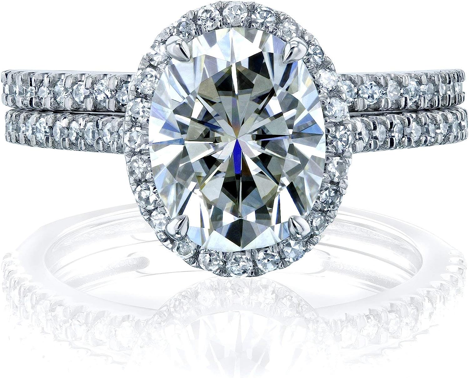 Kobelli Oval Moissanite Halo Bridal Rings Set 2 3/8 CTW 14k White Gold