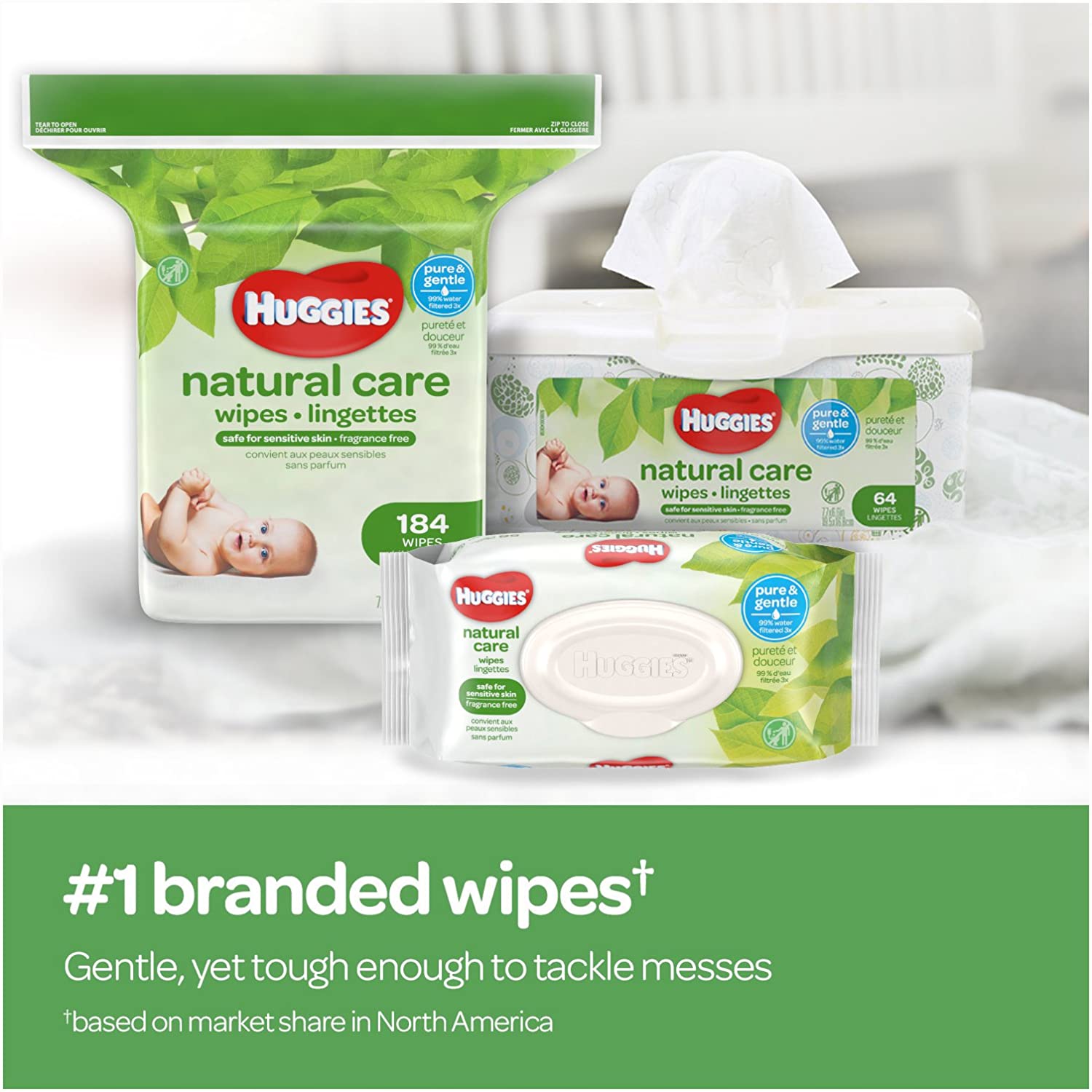 Huggies Natural Care Sensitive Baby Wipes are made with plant-based ingredients, 99% purified water and 1% skin essential ingredients to provide a gentle clean for your baby's soft and delicate skin Natural Care Sensitive Wipes are hypoallergenic, dermatologically tested and pH-balanced to maintain healthy skin They're also infused with aloe & vitamin E to help keep baby's skin healthy and moisturized Natural Care unscented baby wipes are safe for sensitive skin with no harsh ingredients They're fragrance free, alcohol free, paraben free and do not contain phenoxyethanol or MIT In addition, the unique base sheet absorbs, locks in and retains the mess to help ensure your baby's skin is clean and healthy