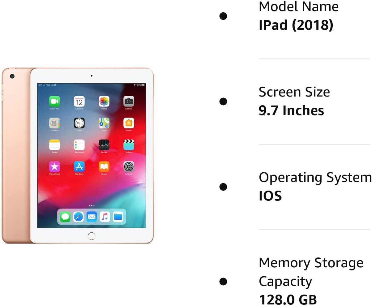 Apple iPad with WiFi, 128GB, Gold (2018 Model) (Renewed)