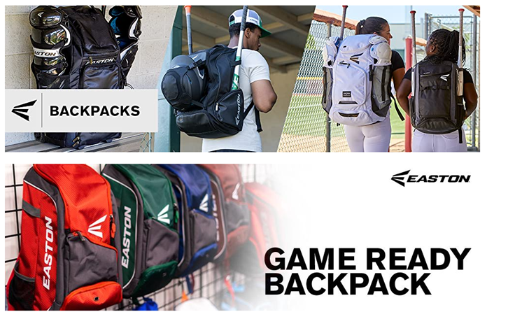 Youth players will be game ready with Easton’s new Game Ready Backpack, featuring a main compartment for a player’s helmet and ball glove, and 2 side mesh pockets to hold bats and/or water bottles. The front pocket keeps personal items easily accessible and the padded back and should straps keep players comfortable on game day.
