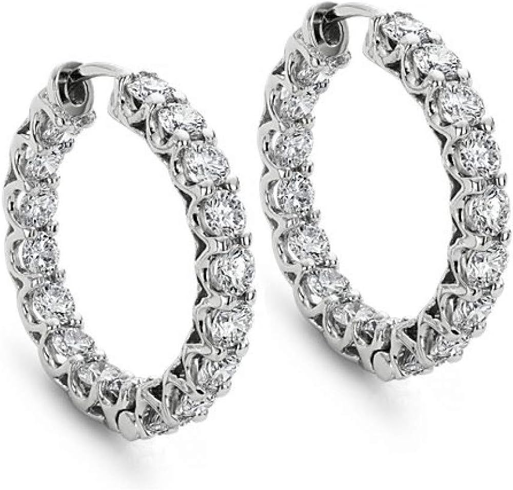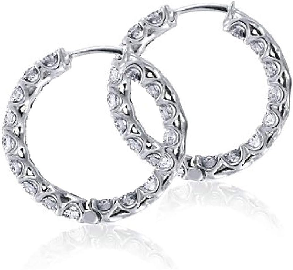 Madina Jewelry 2.00 ct Round Cut Diamond Hoop Huggie Earrings in 14 white Gold