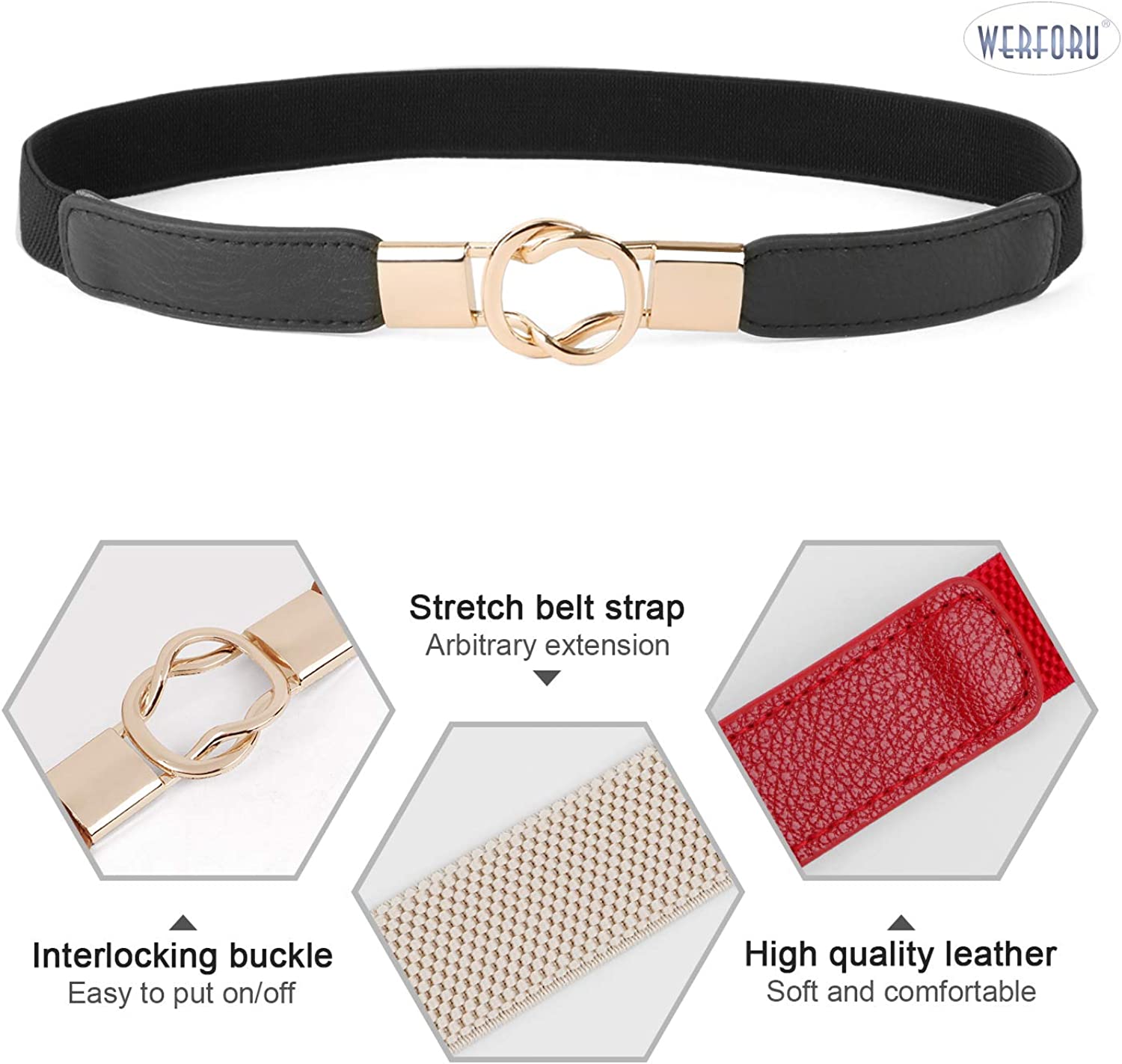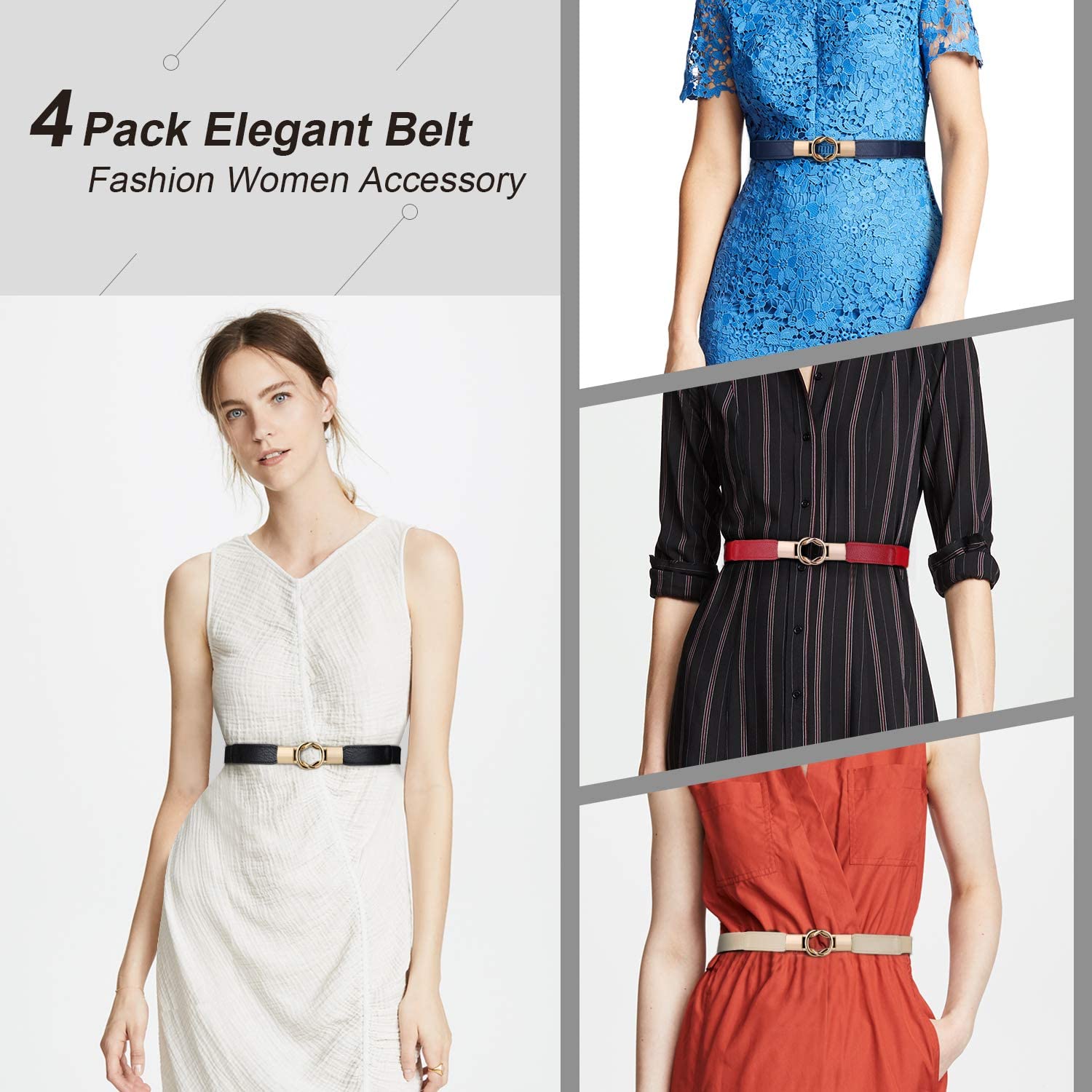 WERFORU Women Skinny Belt for Dresses Retro Stretch Ladies Waist Belt Plus Size Set of 4