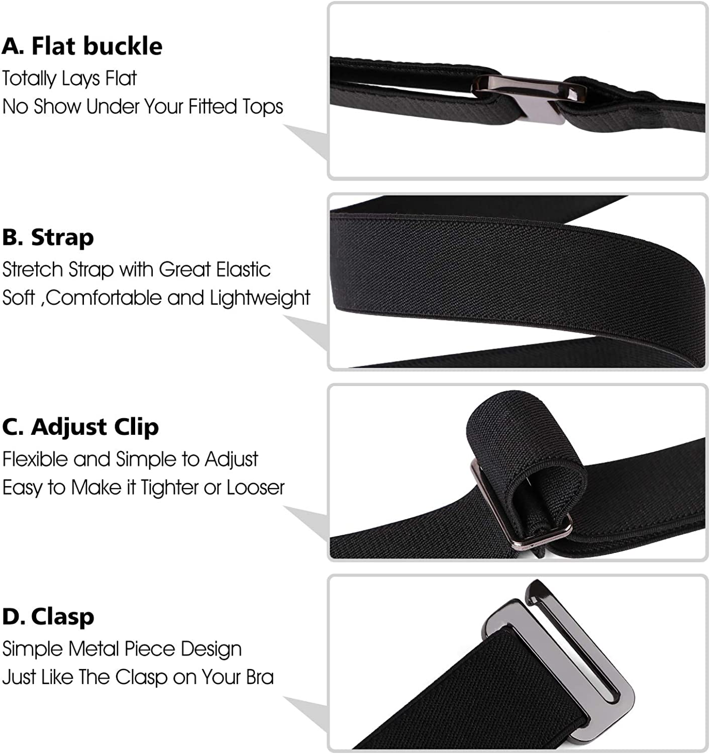 • ☘ Adjustable Size--- It’s so convenient and easy to adjust by moving the adjustment clip like a bra strap to make it tighter or looser. Buckle length:1.57”, belt width:1.18”. Suits for US size 0-16+;