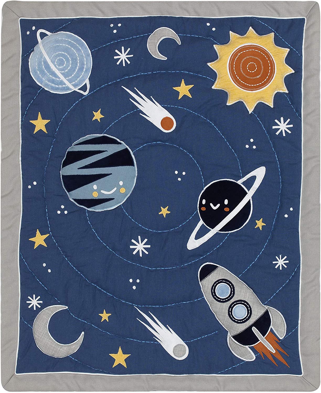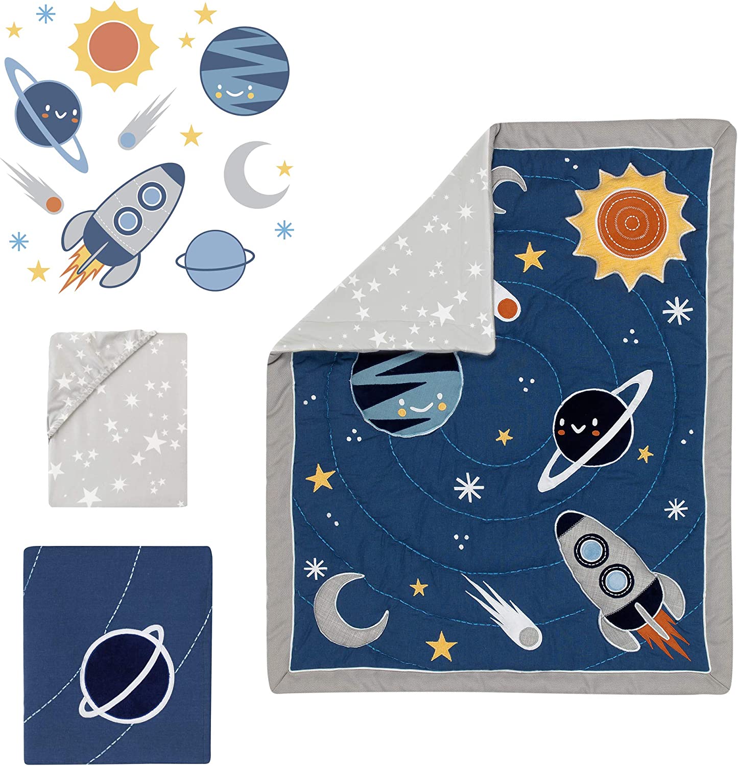 Lambs & Ivy Milky Way Space Galaxy 4-Piece Baby Nursery Crib Bedding Set - Blue/Gray