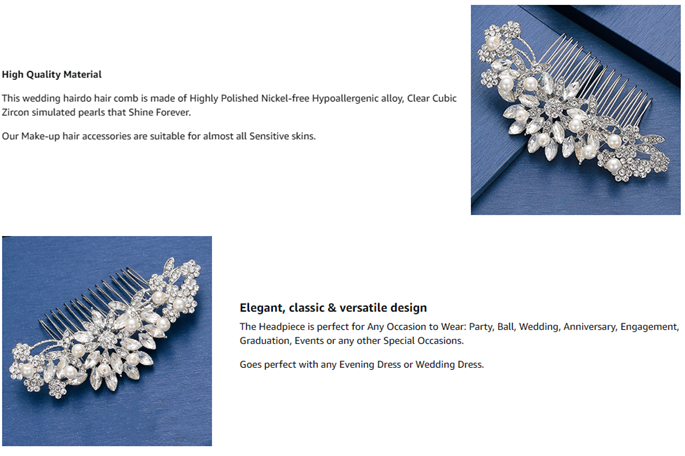 - 4.Come With A Jewelry Box,This Classy And Vintage Design Silver Wedding Hair Comb Is Perfect Alternative To Bold Tiaras, Crown Or Headband. Ideal for Wedding, Mother's day, Homecomings, Anniversary, Evening Party, Valentine's day, Casual Wear, Prom, Honeymoon, Christmas, Valentines’ Day and other special occasions.