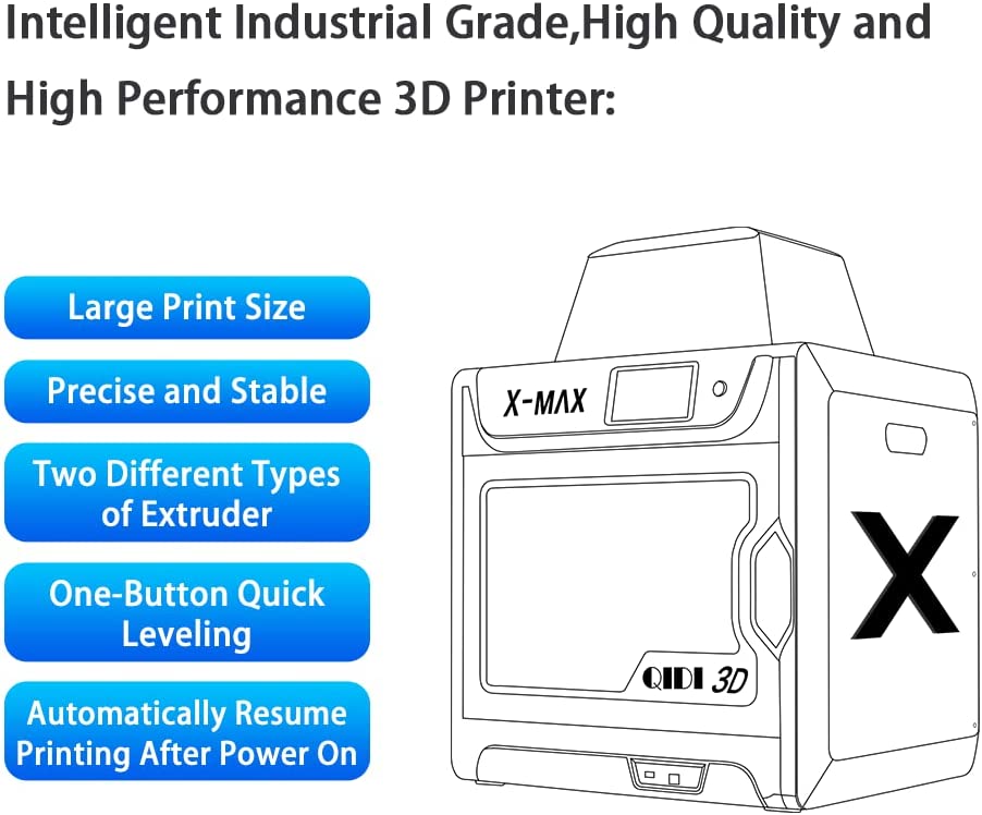 R QIDI TECHNOLOGY Large Size Intelligent Industrial Grade 3D Printer New Model:X-max,5 Inch Touchscreen,WiFi Function,High Precision Printing with ABS,PLA,TPU,Flexible Filament,300x250x300mm