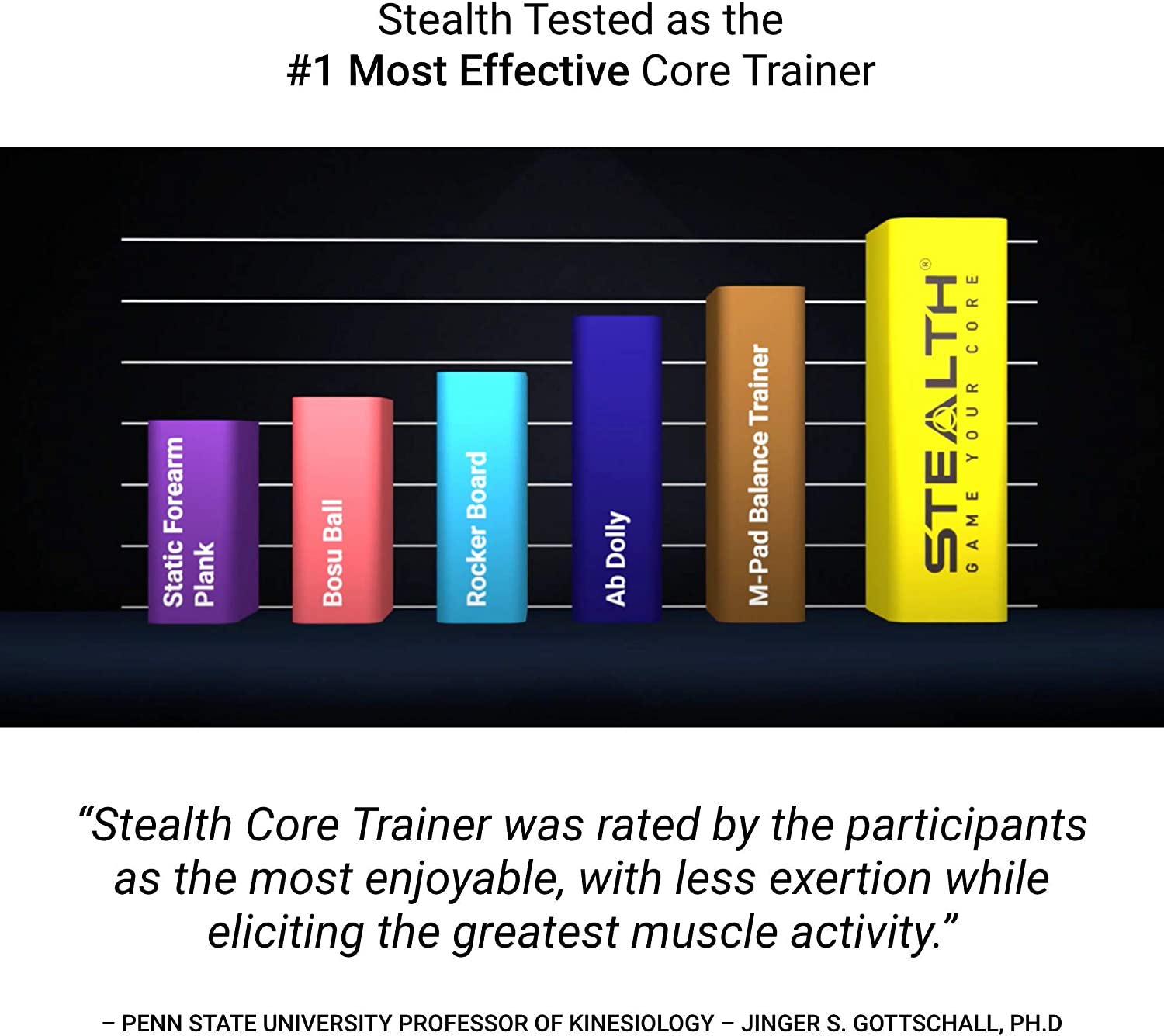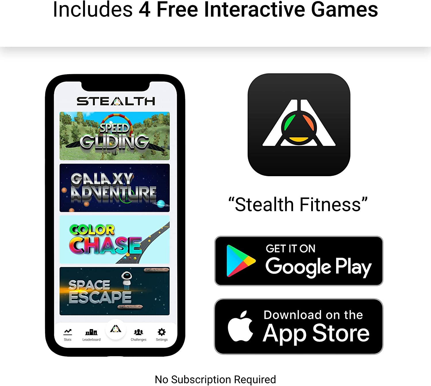 • Plank and Play Games with proprietary 360 degree motion! Stealth provides a superior multi-directional dynamic exercise experience that allows you to move at multiple angles while playing innovative fitness games on your phone!