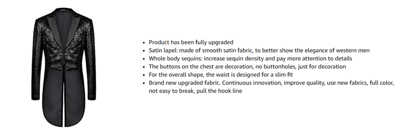 - SUITABLE OCCASION : colorful and shiny blazer, make you understanding in magician event, stage performance, dress, coat, nightclub, bar, host, chorus, conductor, etc.