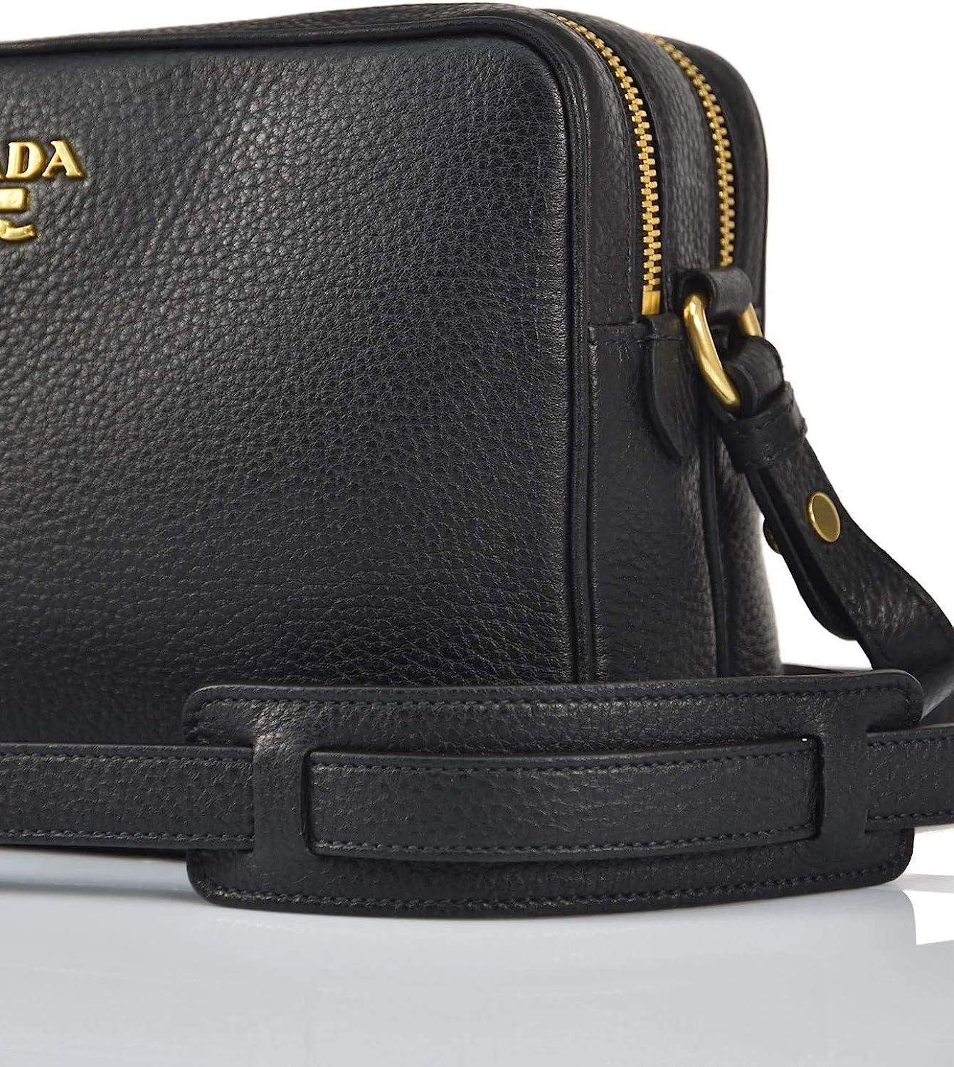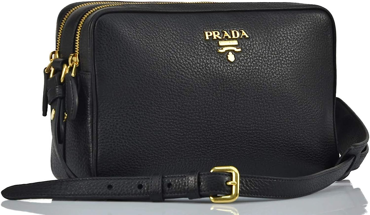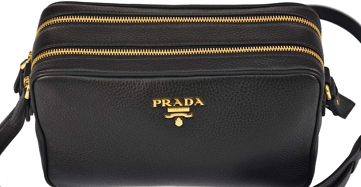 Prada Women's Black Bandoliera Vitello Phenix Leather Crossbody Bag 1BH079