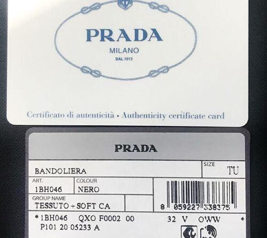 Includes authenticity cards and Prada dust bag