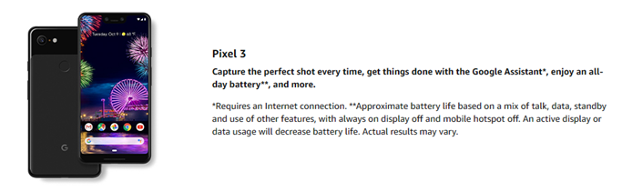 • Pixel 3 comes with a battery that charges fast and wireless, and lasts all-day. It's even smart enough to limit battery usage for the apps you don't use often to keep you going longer.