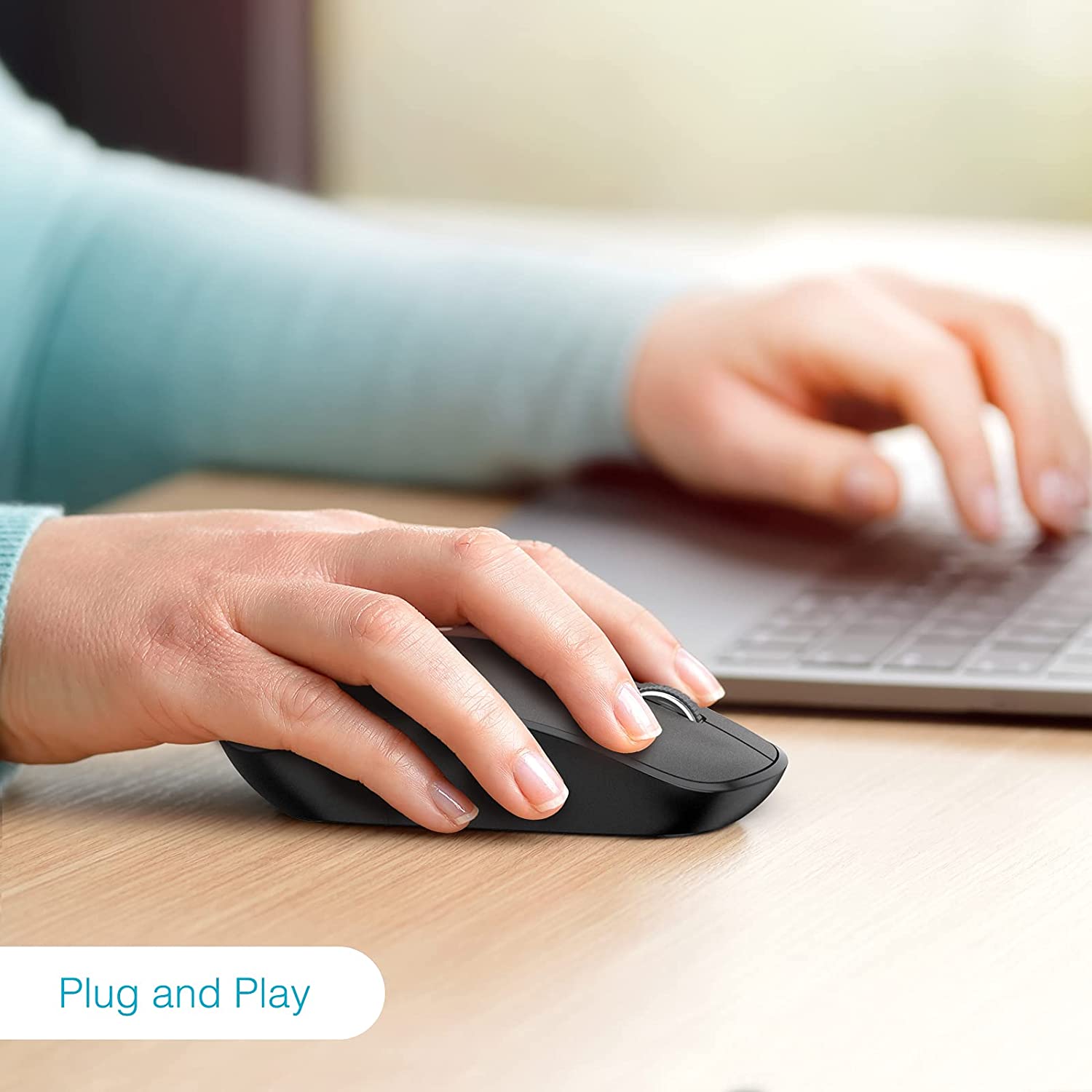 【PLUG AND PIAY】Tiny wireless receiver conveniently slots into your computer's USB port, taking up minimal space. USB-receiver stays in your PC USB port or stows conveniently inside the wireless mouse when not in use. Perfect for work and entertainment in home or office.