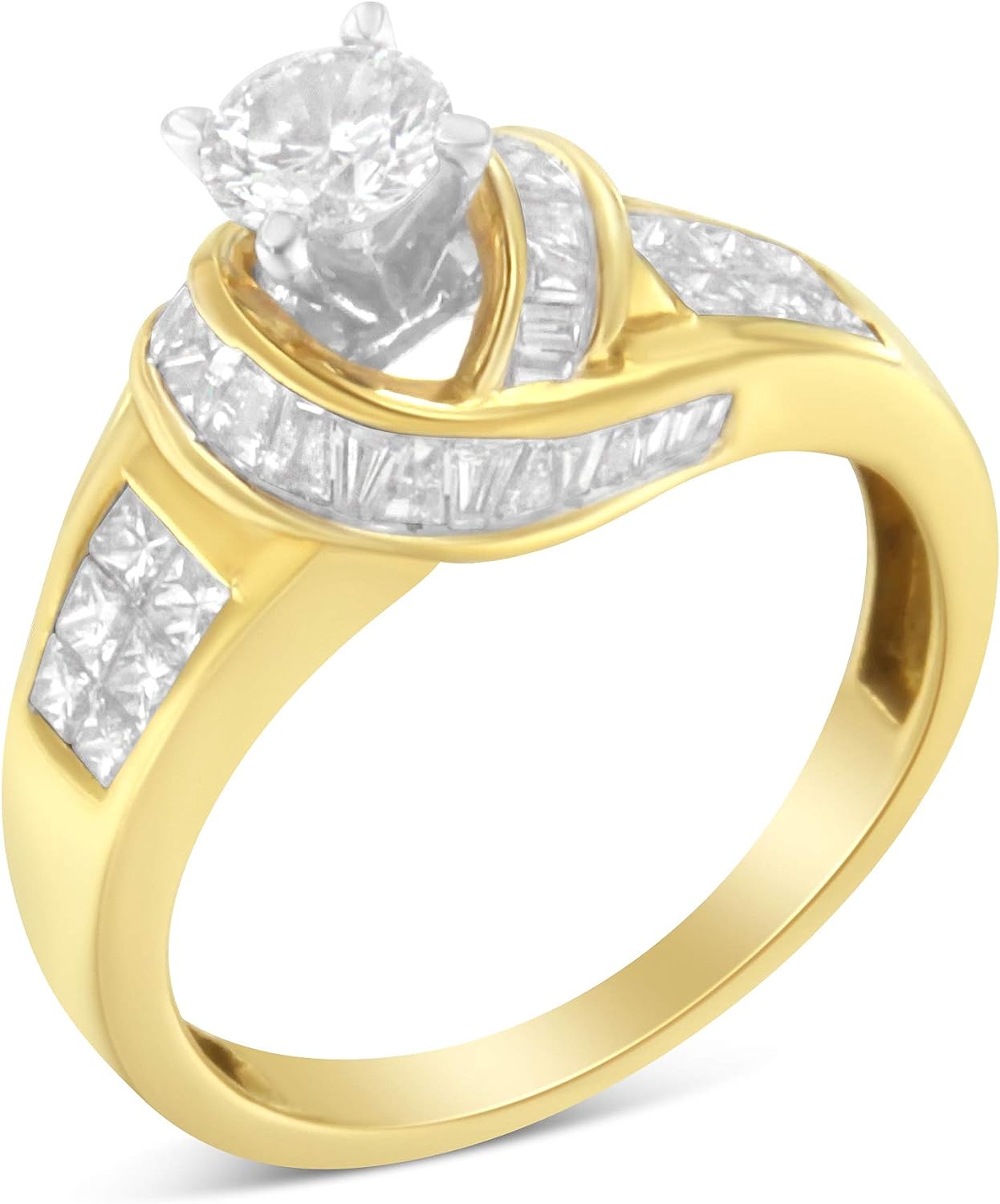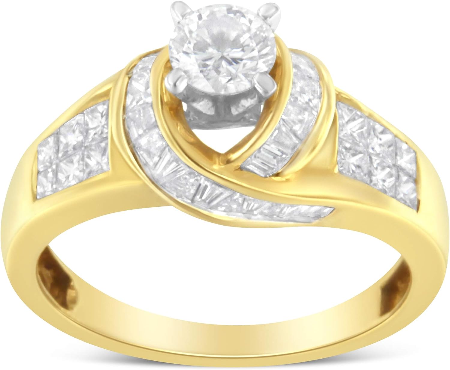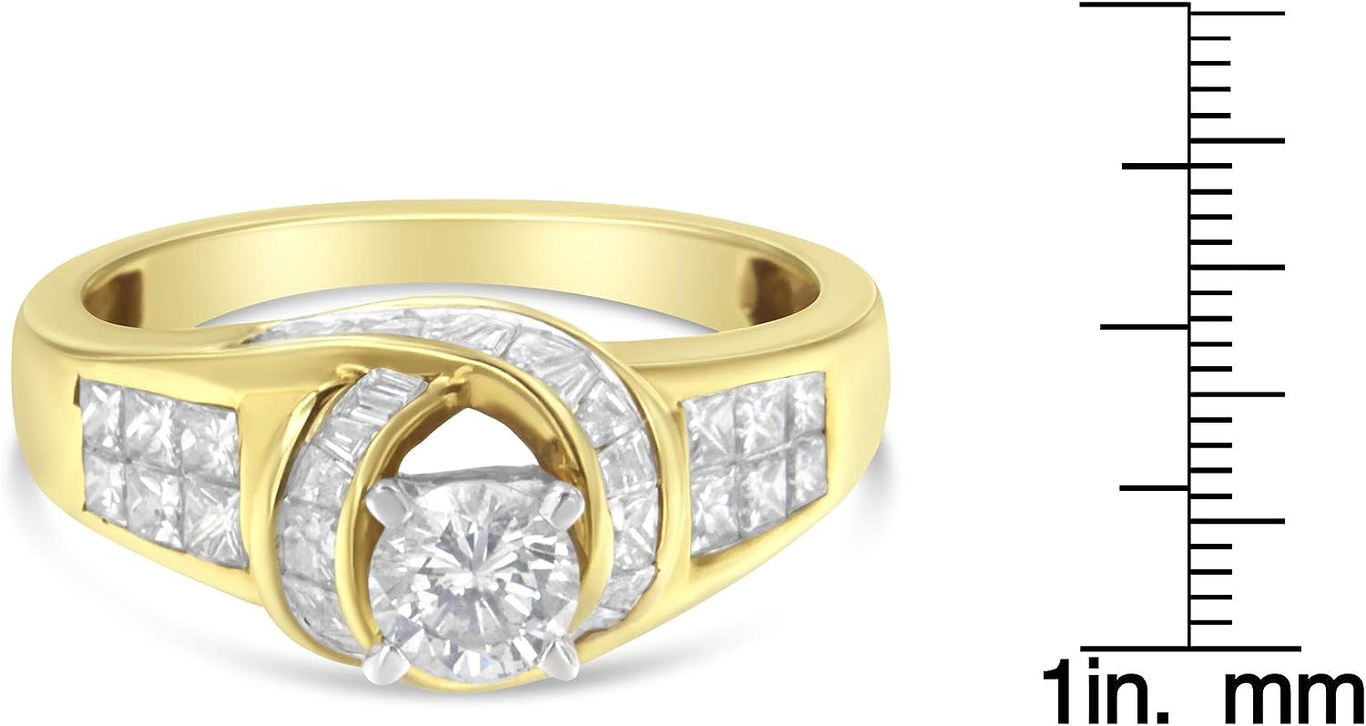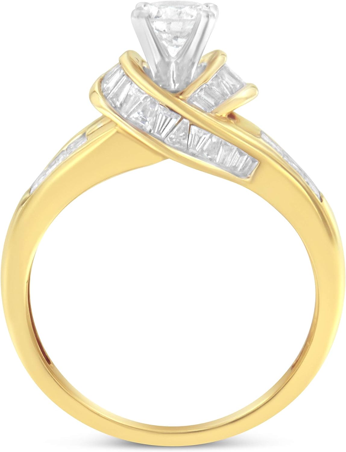 Original Classics 14K Two-Toned Yellow Gold 1-1/8 Cttw Round, Baguette & Princess Cut Diamond Wrapped Ribbon Channel Set Engagement or Fashion Ring (H-I Color, SI2-I1 Clarity)