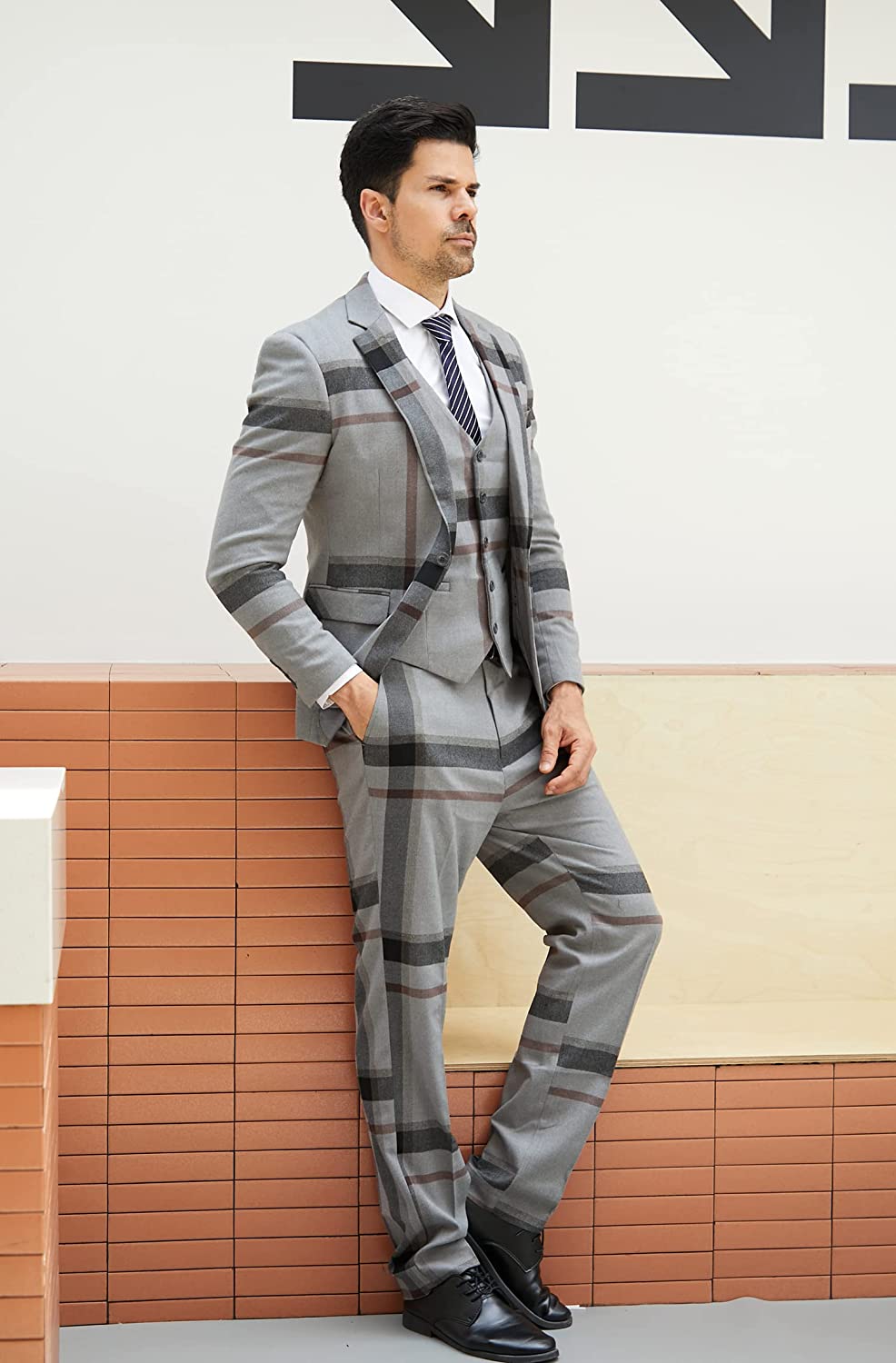 Men Plaid Suit Material:80% Polyester and 20%Rayon. Comfortable,warm, breathable and soft feeling.