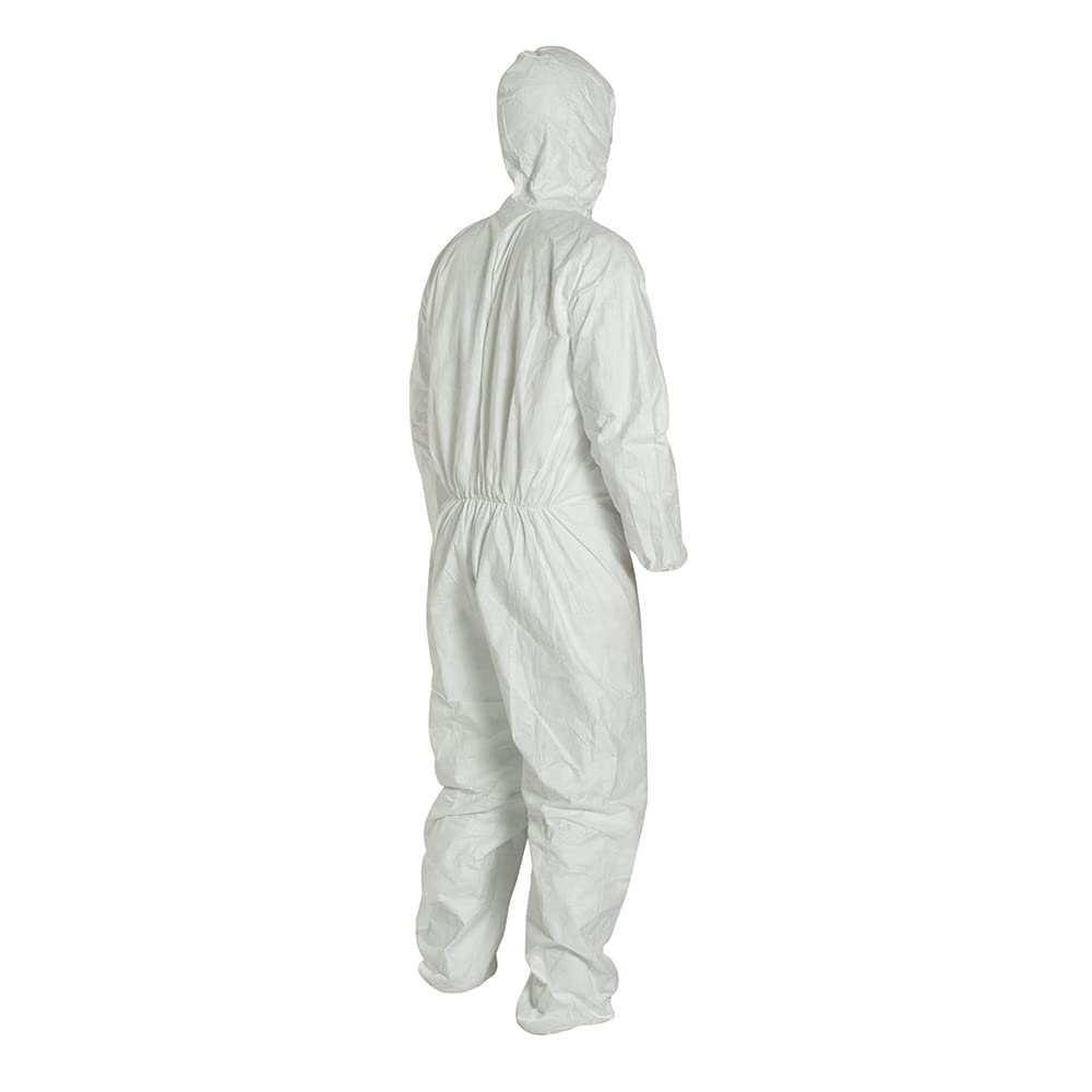 Tyvek 400 garments are composed of flash spun high density polyethylene which creates a unique, nonwoven material available only from DuPont. Tyvek 400 provides an ideal balance of protection, durability and comfort of any limited use fabric technology. Tyvek 400 fabric offers an inherent barrier against particles (down to 1.0 micron in size). Protection is built into the fabric itself; there are no films or laminates to abrade or wear away. Tyvek 400 fabric's durability advantage over microporous film fabrics delivers consistently better barrier, even after wear and abrasion. Applications include: lead and asbestos abatement/remediation, general maintenance/operations, spray painting, general clean-up.
