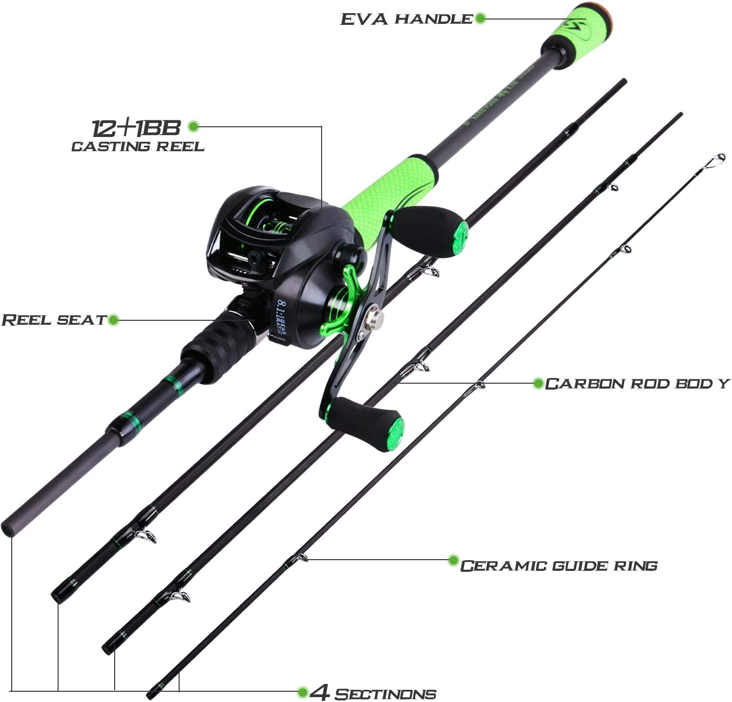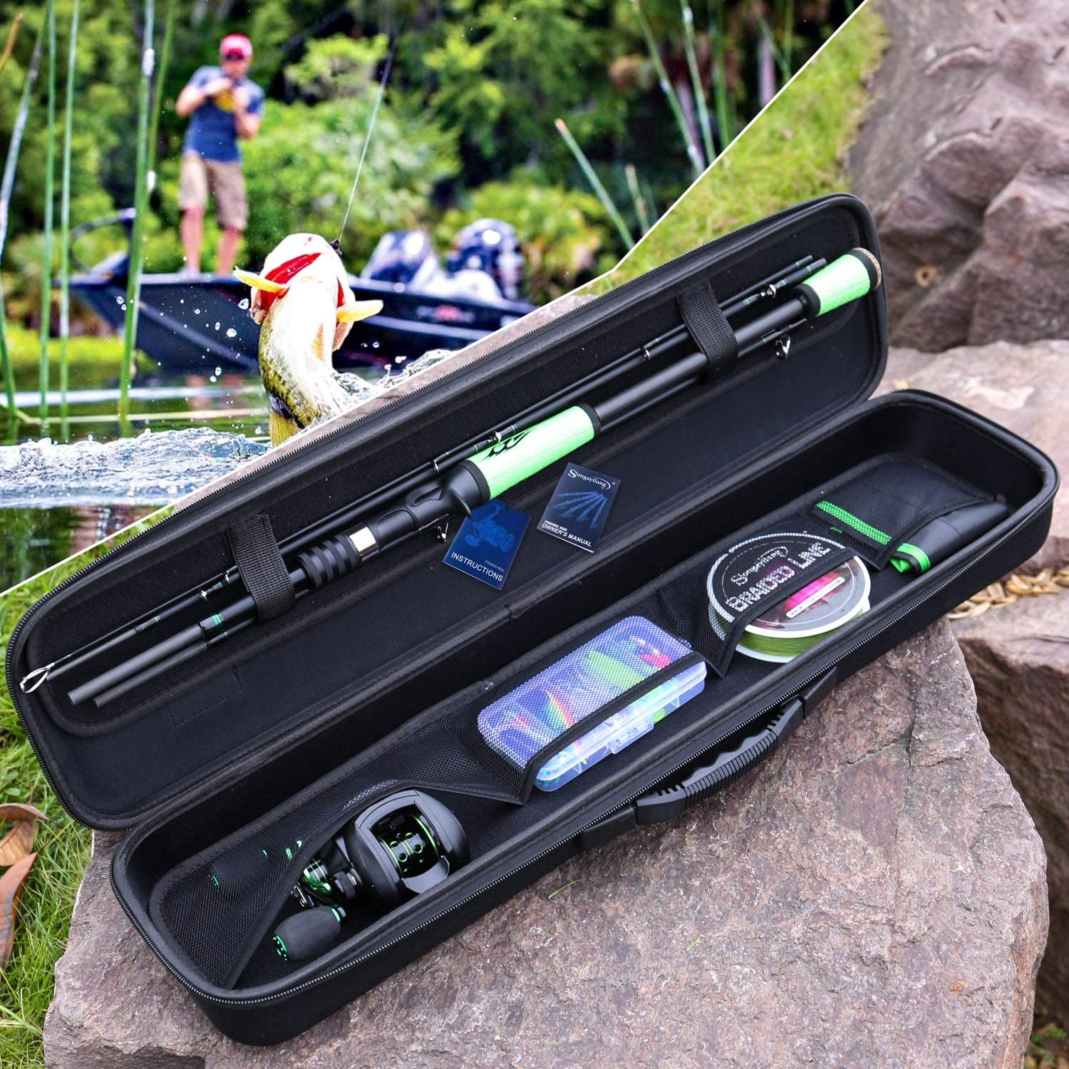 • PERFECT COMBINATION: They’re made of a low-filler, high-glass carbon fiber method so that it can reduces weight increases sensitivity,boosts the length of your casts.A fishing combos specially made for bass with high sensitivity.
