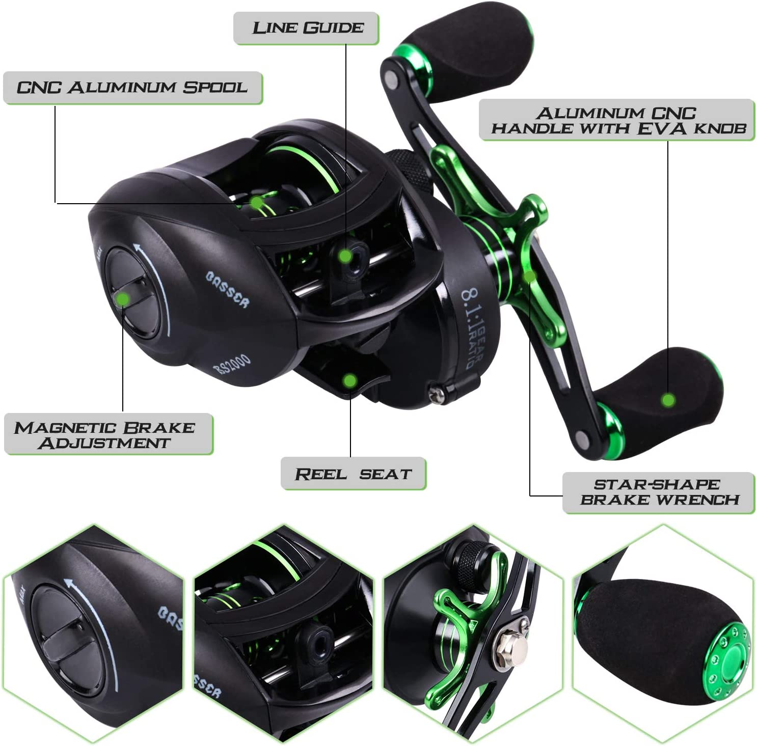• THE FISHING REEL:7.0:1 gear ratio with CNC machined gear,which makes it more smooth and durable. Brilliant anodized aluminum forged so that it has the state of the fast brakes, which makes you enjoy the fun of hunting perfectly.
