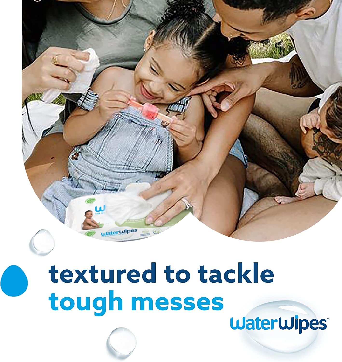 TEXTURED FOR TOUGHER MESSES: As babies grow, so do the messes. The soft, textured surface of water wipes provides added cleaning power to tackle messes on hands, faces and bottoms, making them perfect for growing babies and toddlers.